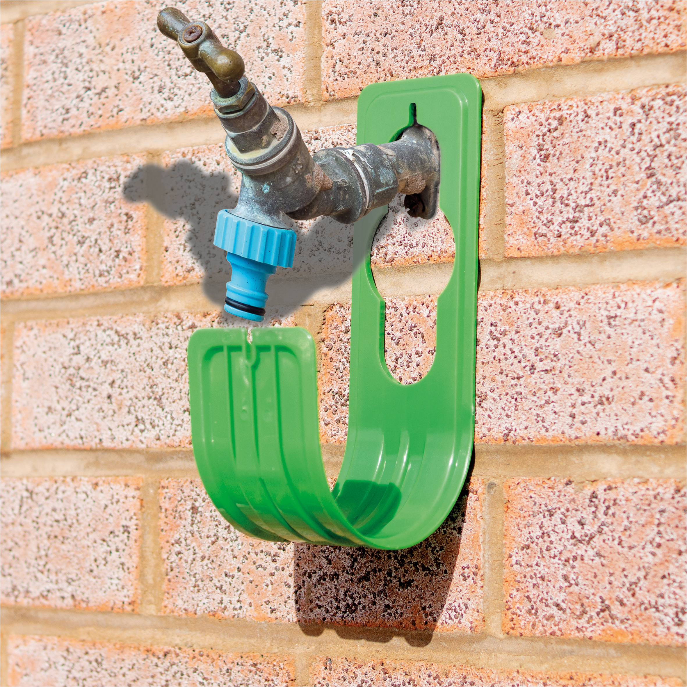 The wall mounted hose pipe hanger from St Helens Home Garden is designed to hold your hose pipe ensuring your garden looks neat and tidy at all times. The hanger works equally well with either standard or expandable hose pipes. Extremely easy to install, simply hook over your garden tap. Made from strong and durable ABS plastic and supplied in green to blend in with your garden environment.