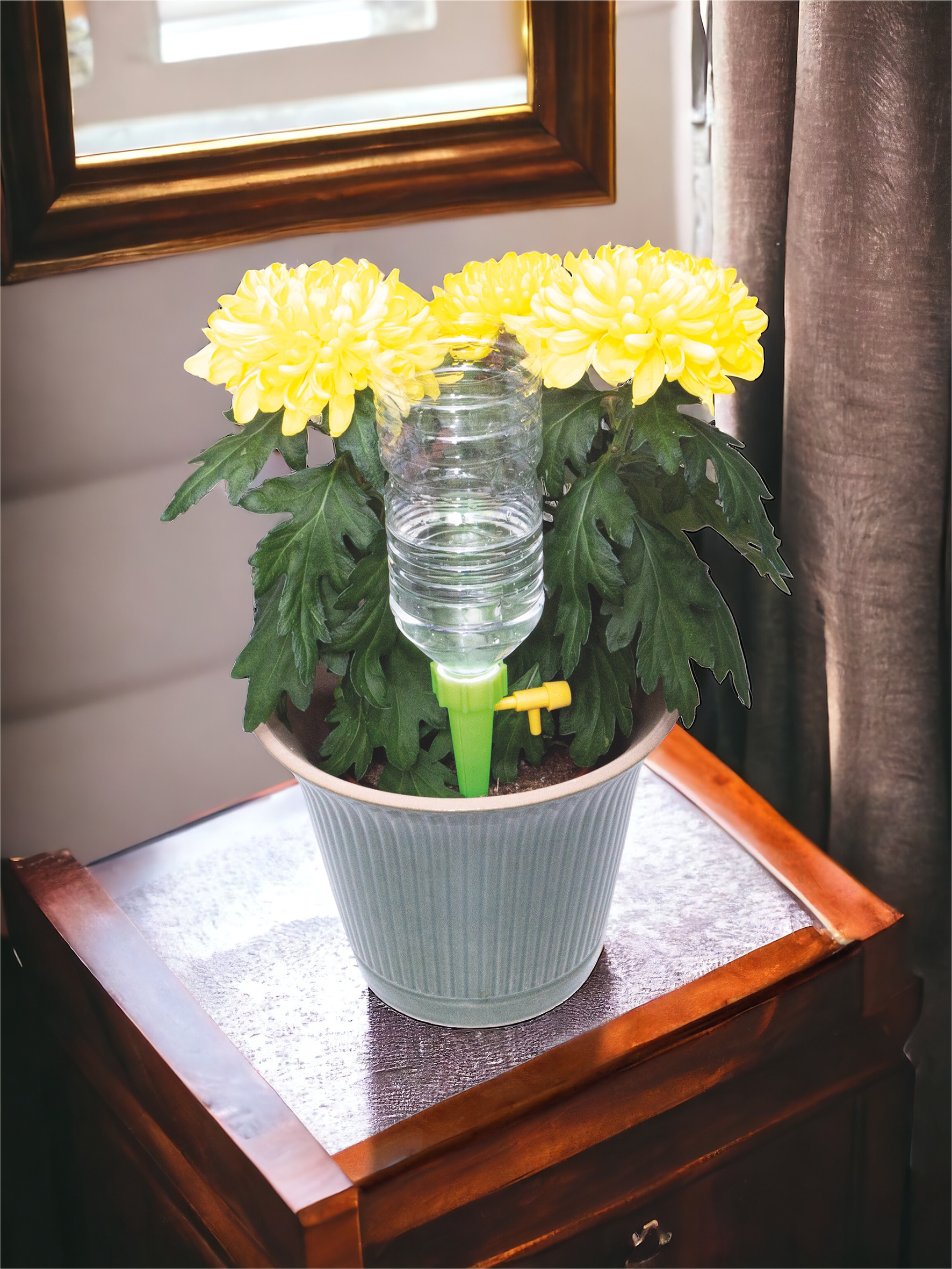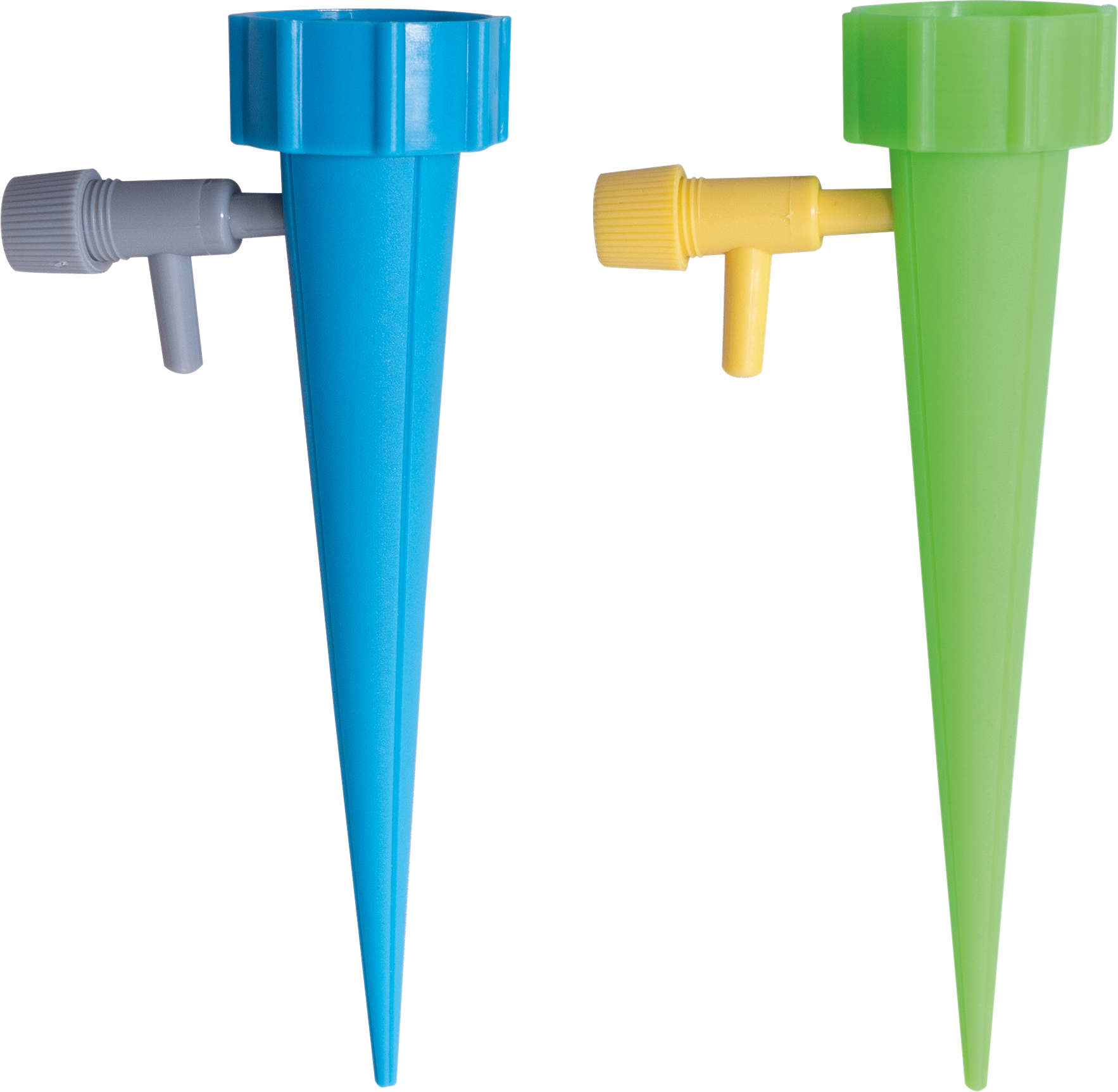 The watering spike from St Helens Home Garden ensures that your plants receive regular water over a period of time, the speed of the water flow can be set using the adjustable valve, the flow rate can be tailored to suit the watering needs of individual plants as some need more water than others. This style of sustained watering is better for your plants than sporadic watering. Simply push the spike into the soil surrounding your plant, attach a bottle to the top of the spike (a large variety of water and fizzy drink bottles will work) cut a hole in the top of the bottle so that you can pour in the water, open the valve and set it to the desired flow rate. This handy device is perfect for watering your plants when you go on holiday, are away on business, or even if you simply do not have the time to water your house plants on a daily basis. This simple automatic watering device can be used indoors or outdoors, on potted plants and hanging baskets.