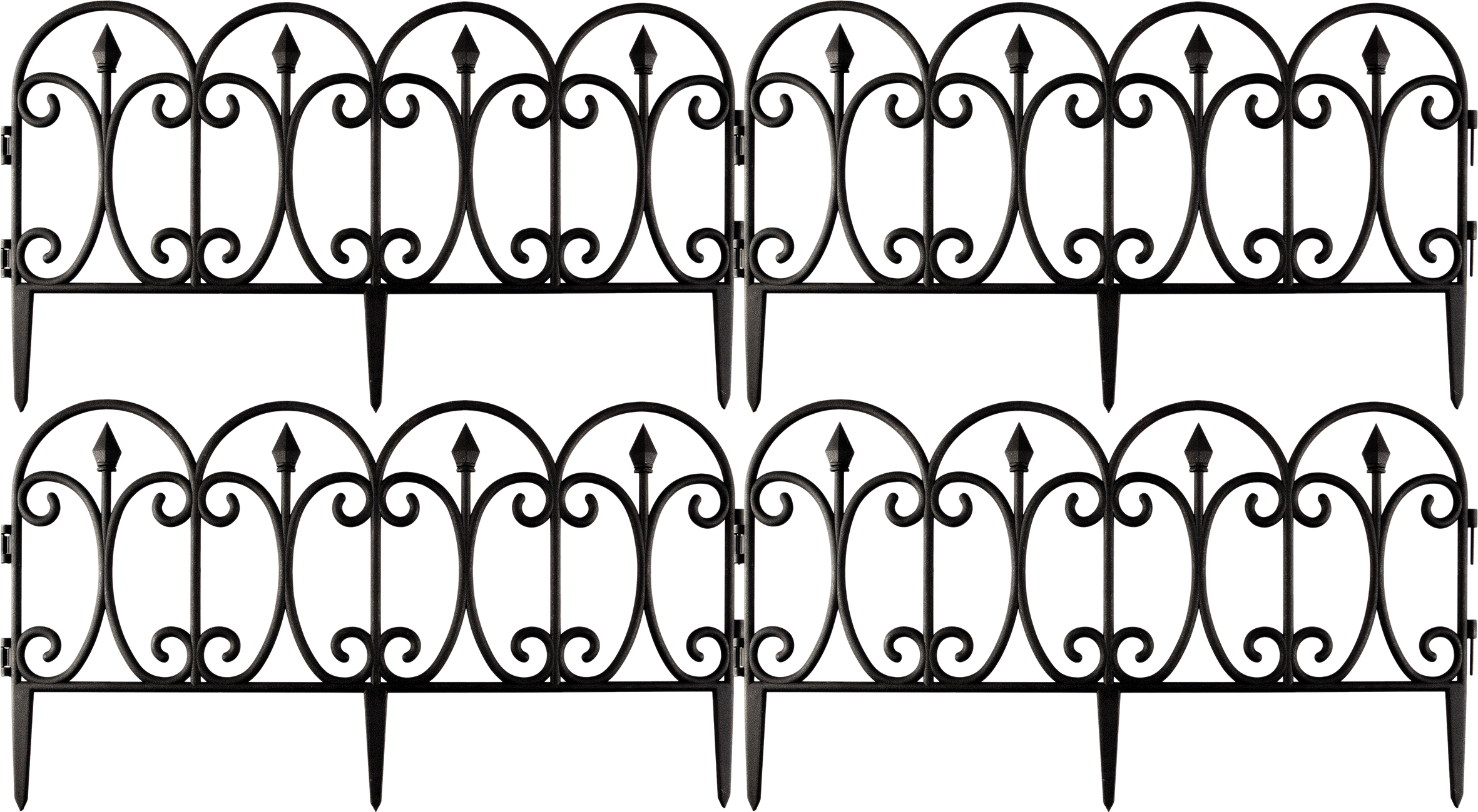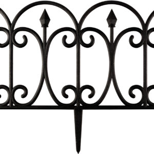The wrought iron effect garden edging fence from St Helens Home and Garden is the perfect way to edge and define lawns, paths and borders in your garden, also ideal for making a decorative feature around trees or water features for example. It will enhance the look of any garden thanks to its wrought iron effect design. Made from plastic for durability and weather resistance, suitable for use all year round. The panels are interlocking so simply connect as many panels as you require for each section of your garden. Each panel has 3 ground spikes for easy insertion into gravel or soil.