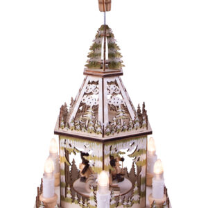 A battery powered take on the traditional German Christmas Pyramid. It is often suggested that the German pyramid is a predecessor of the Christmas Tree, true or not you will love this traditional wooden decoration. Simply insert 2x AAA batteries (not supplied) and the 6 built in LED lights shine and the carousel starts to gently turn. This beautifully crafted pyramid will look perfect on your window sill or table tops, in fact anywhere you want to create a wonderfully festive atmosphere. This LED pyramid is a fantastic alternative to the traditional Christmas candle bridges. Made from wood sourced from an FSC accredited manufacturer. The pyramid features festive carvings in natural wood tones.