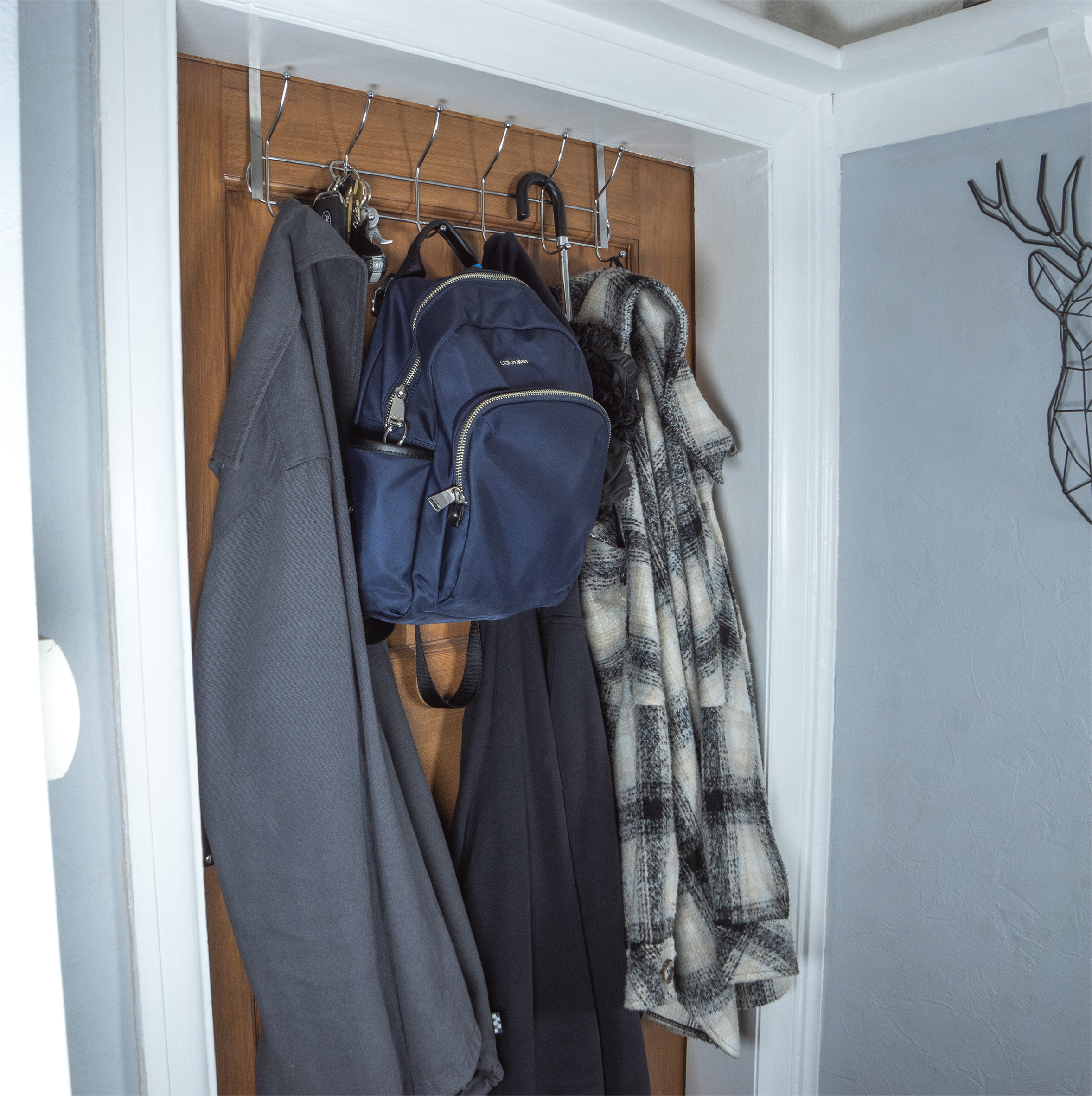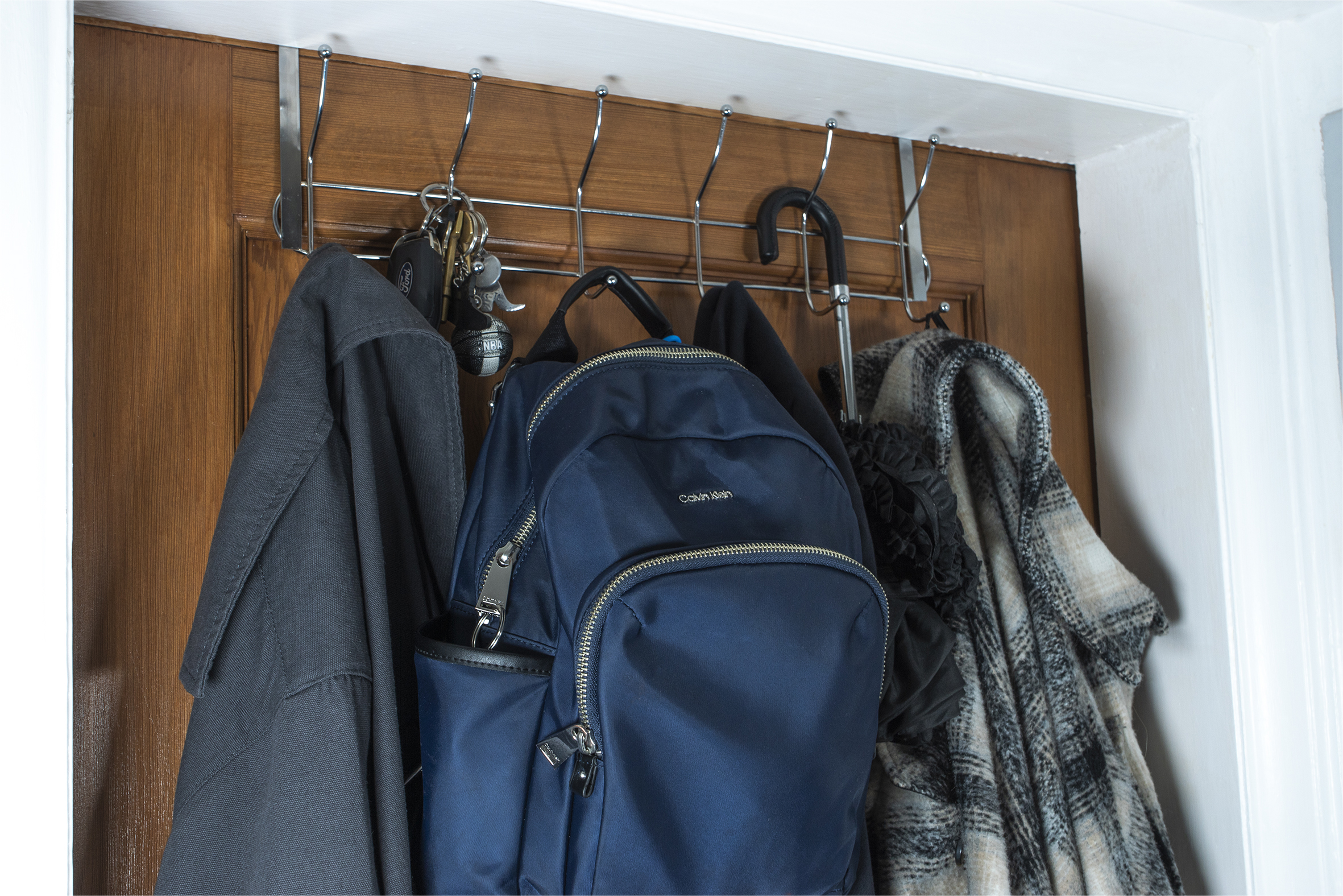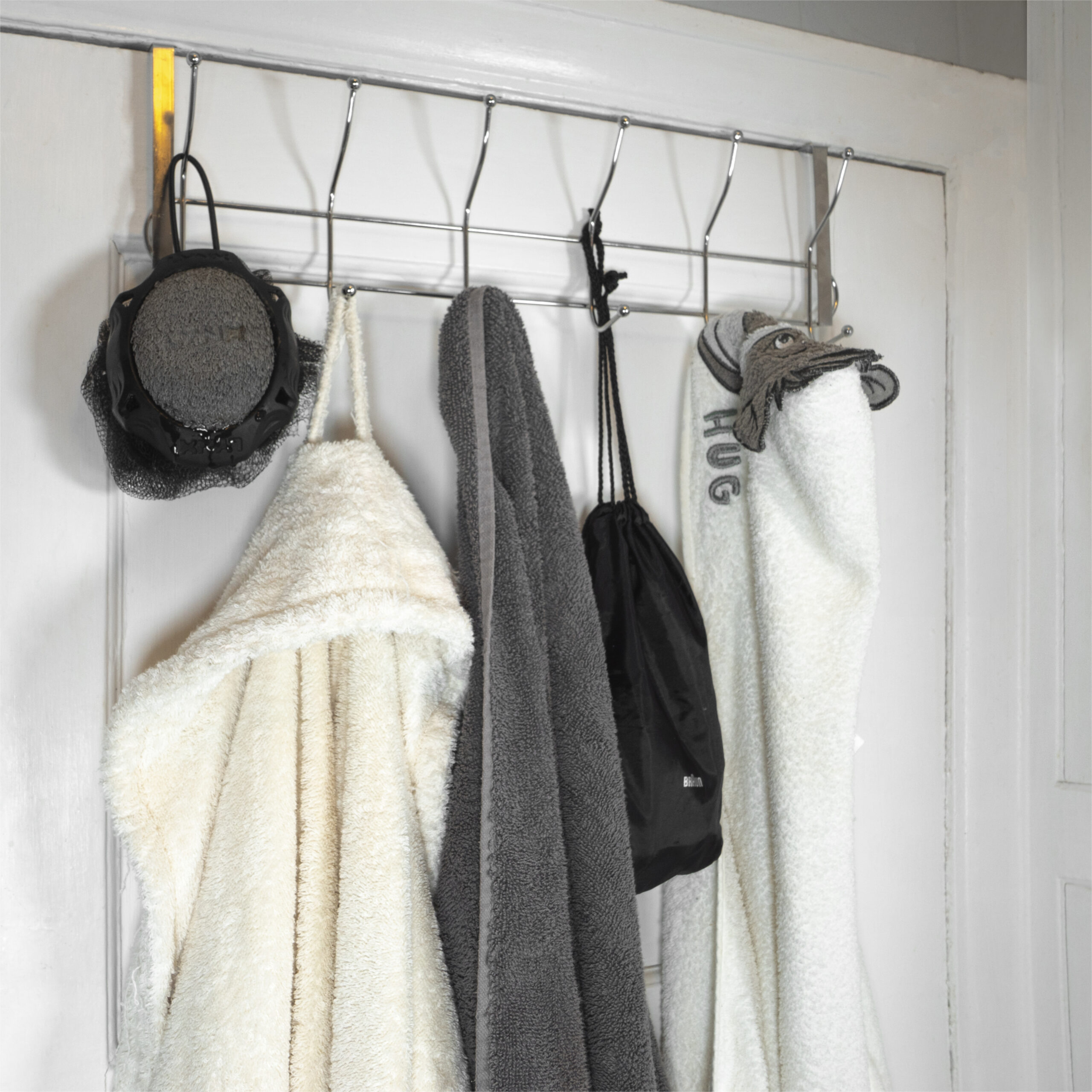 Don’t want to drill holes into your doors, not a problem! This hook hanger simply clips over the top of your door providing you with 6 hooks to hang things like coats, towels, bathrobes, bags and keys etc. Use in any room in your home, garage or shed.No assembly, screwing or drilling is required and the hook hanger can be moved as often as you like to wherever you need it most. This stylish yet simple design would complement any room and decorating scheme. Organise your life with this space saving solution. Suitable for use on standard doors with a maximum thickness of 4.5cm