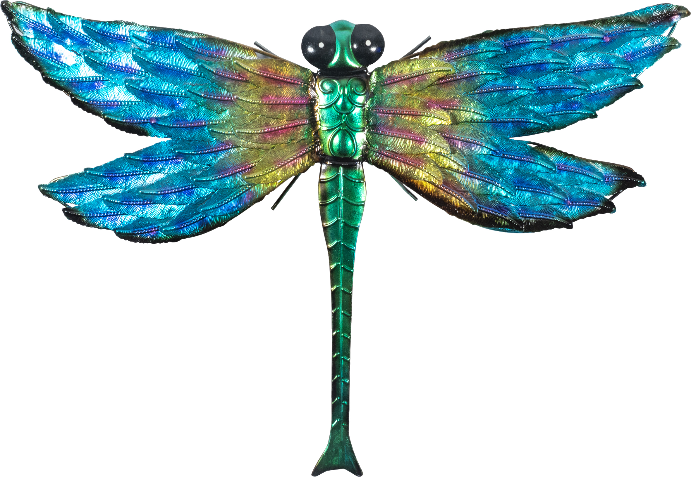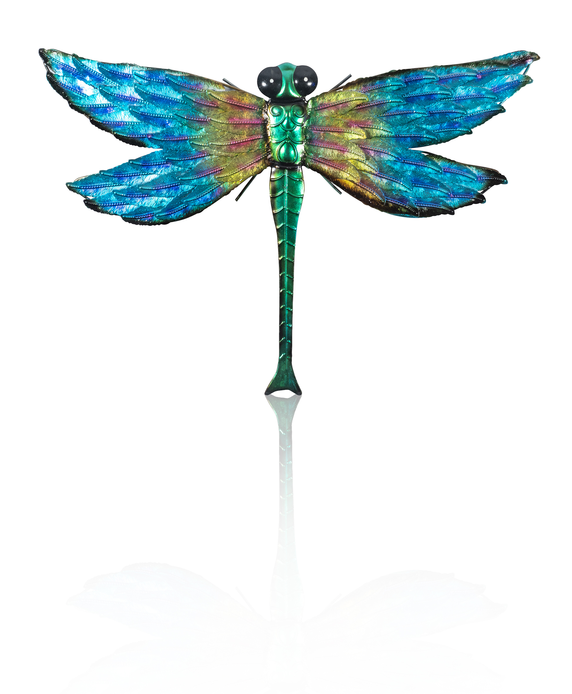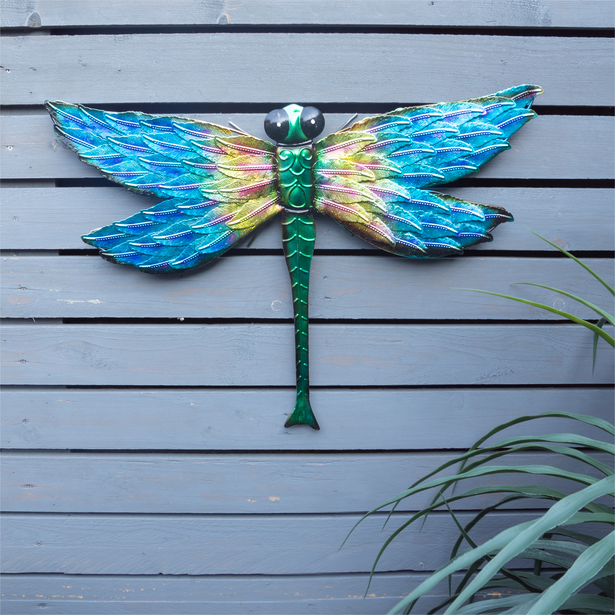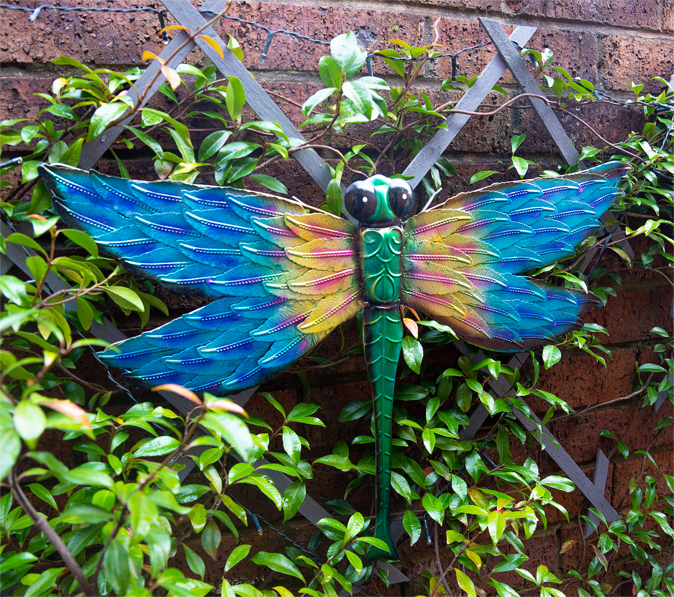 Add a tropical vibe to your garden with this vibrantly coloured dragonfly wall ornament. The dragonfly can easily be secured to your outdoor walls with the supplied fixings and the built in hanging hole. The dragonfly could even be displayed in your home to create a feature wall and provide a pop of colour. Made from durable metal to ensure it can withstand even the harshest of weather conditions.