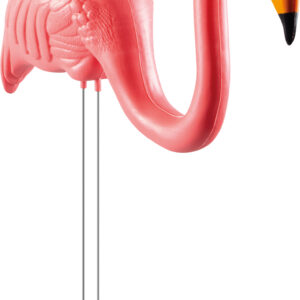 Add a tropical vibe to your garden, pond or home with these vibrantly coloured flamingo ornaments. Each flamingo is supplied with 2 ground spikes which are simply screwed into the base of the flamingos, this means they can easily be inserted into lawns, ponds, pots or borders, you could even display the flamingos indoors for themed parties or to add a pop of colour. Made from durable PE material to ensure they can withstand even the harshest of weather conditions.