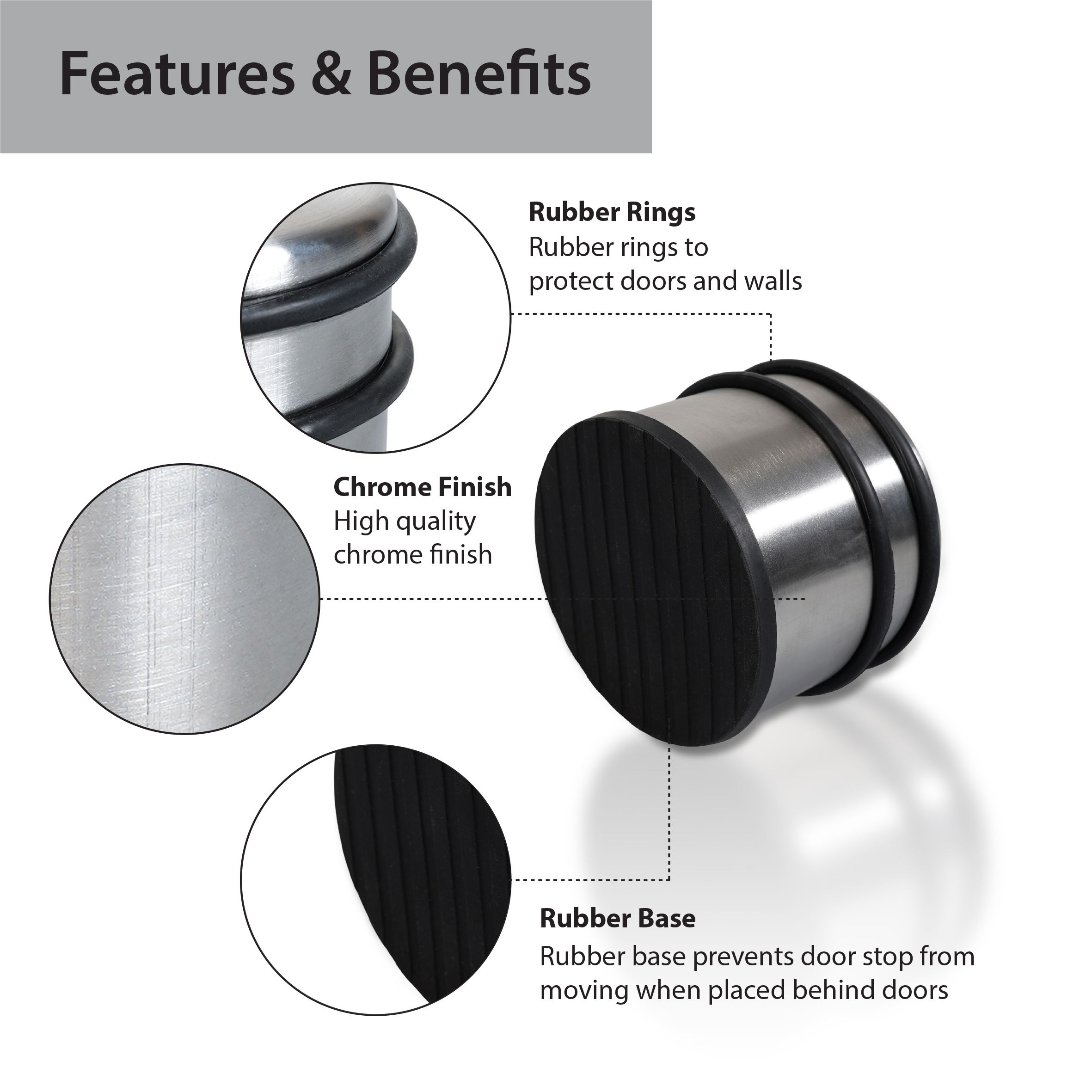 Ideal for keeping doors open when required. The product is made from stainless steel with rubber high grip base to keep the unit in position and rubber rings for door and wall protection.