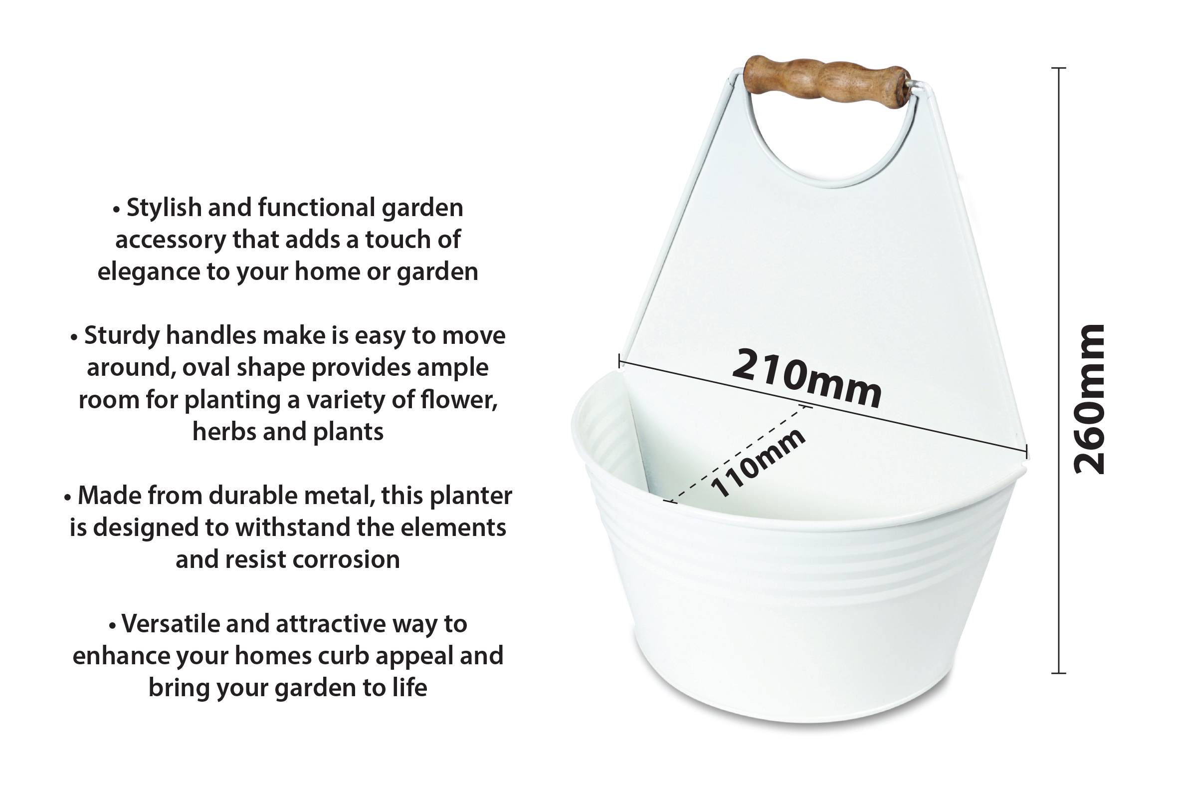 The St Helens Home and Garden Metal Wall Planter with Handle is the perfect addition to any indoor or outdoor space. Crafted with robust metal, this planter is designed to fit neatly against a wall and is sturdy and durable, ensuring that your plants stay secure and healthy. The shape of this planter adds a touch of sophistication and elegance to any decor, while the white finish creates a clean and modern look. The handle on top of the planter make it easy to move from one location to another, allowing you to rearrange your plants whenever you want. This planter is ideal for a variety of plants, including flowers, herbs, and small shrubs. It is also perfect as a decorative accent on a mantel or shelf. Whether you are an experienced gardener or just starting out, the St Helens Home and Garden Metal Planter with Handle is a must-have for any home or garden enthusiast. Its sleek and stylish design makes it a perfect choice for anyone looking to add a touch of elegance to their space while providing a functional and practical planter for their favourite plants.