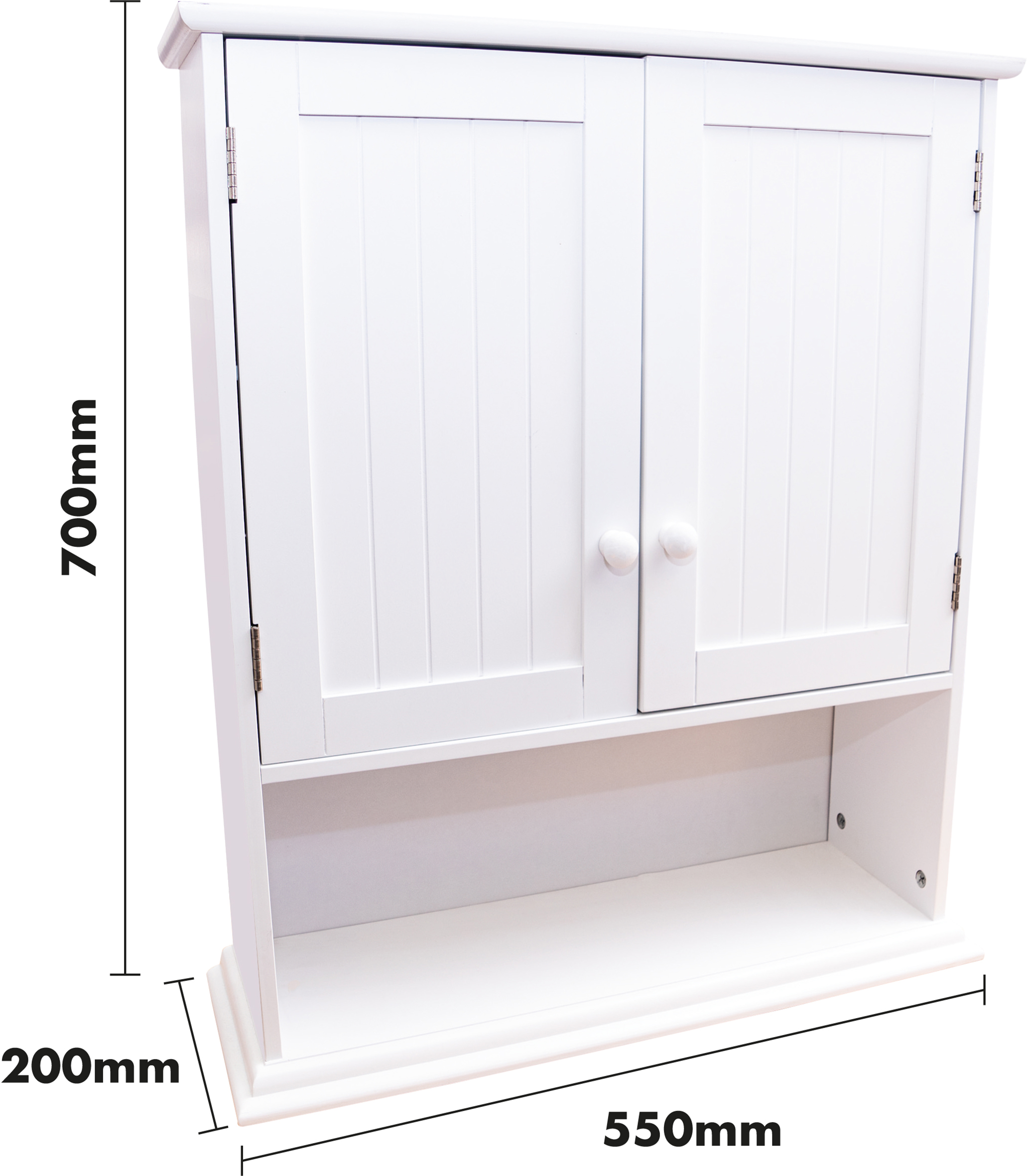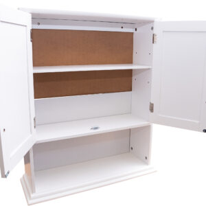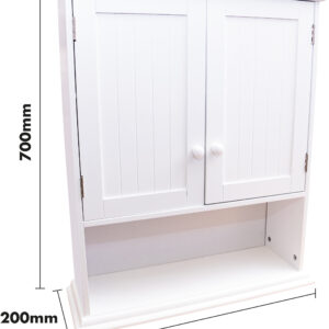 The wall mounted bathroom cabinet from St Helens Home and Garden is the perfect mix of style and functionality and will enhance the look of any bathroom. The cabinet features 2 doors that open to reveal an abundance of storage space which includes a shelf and a further shelf underneath to store items that are needed everyday such as toothbrushes and soap. The cabinet is white with matching white handles to give a stylish and clean looking finish.
