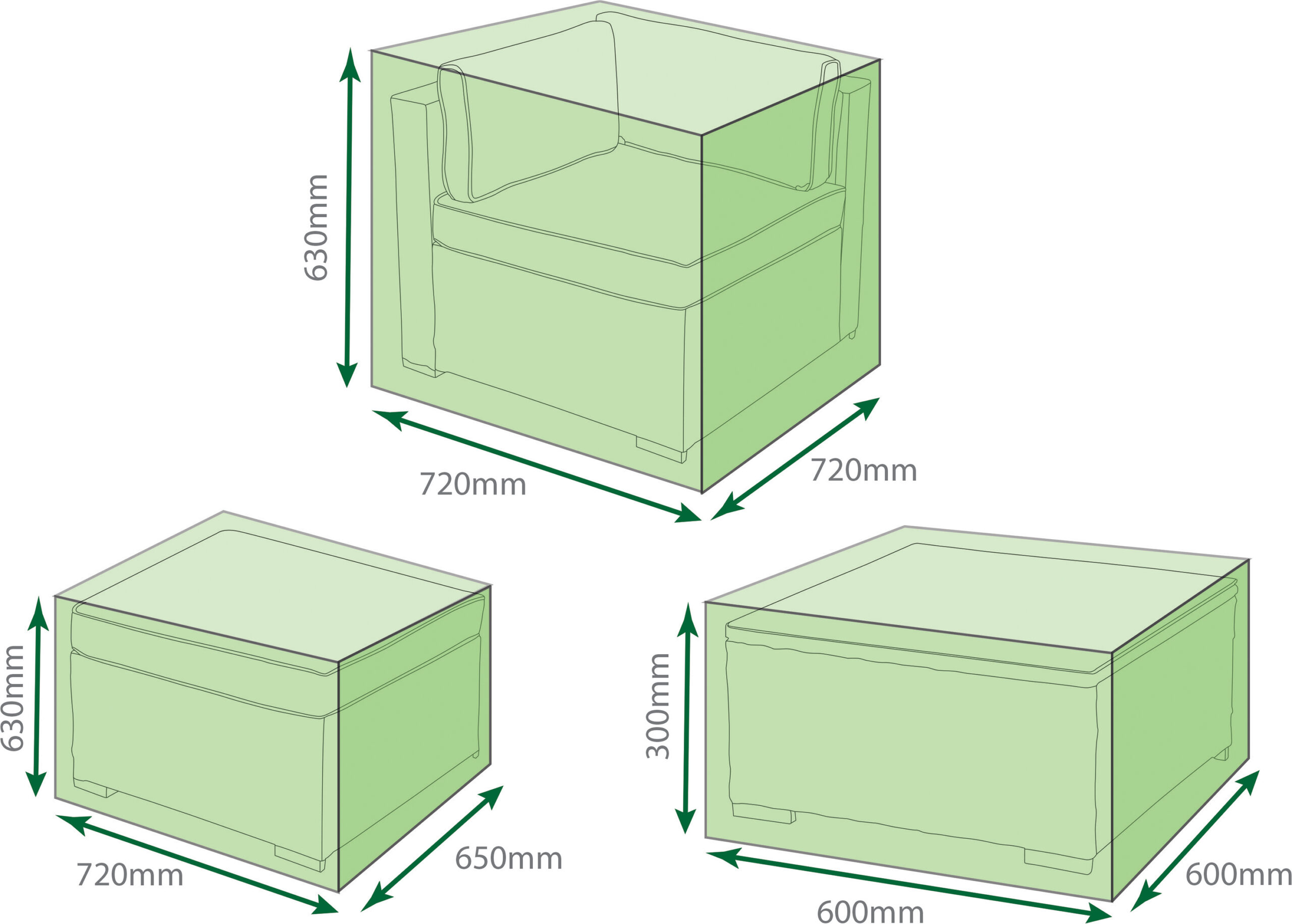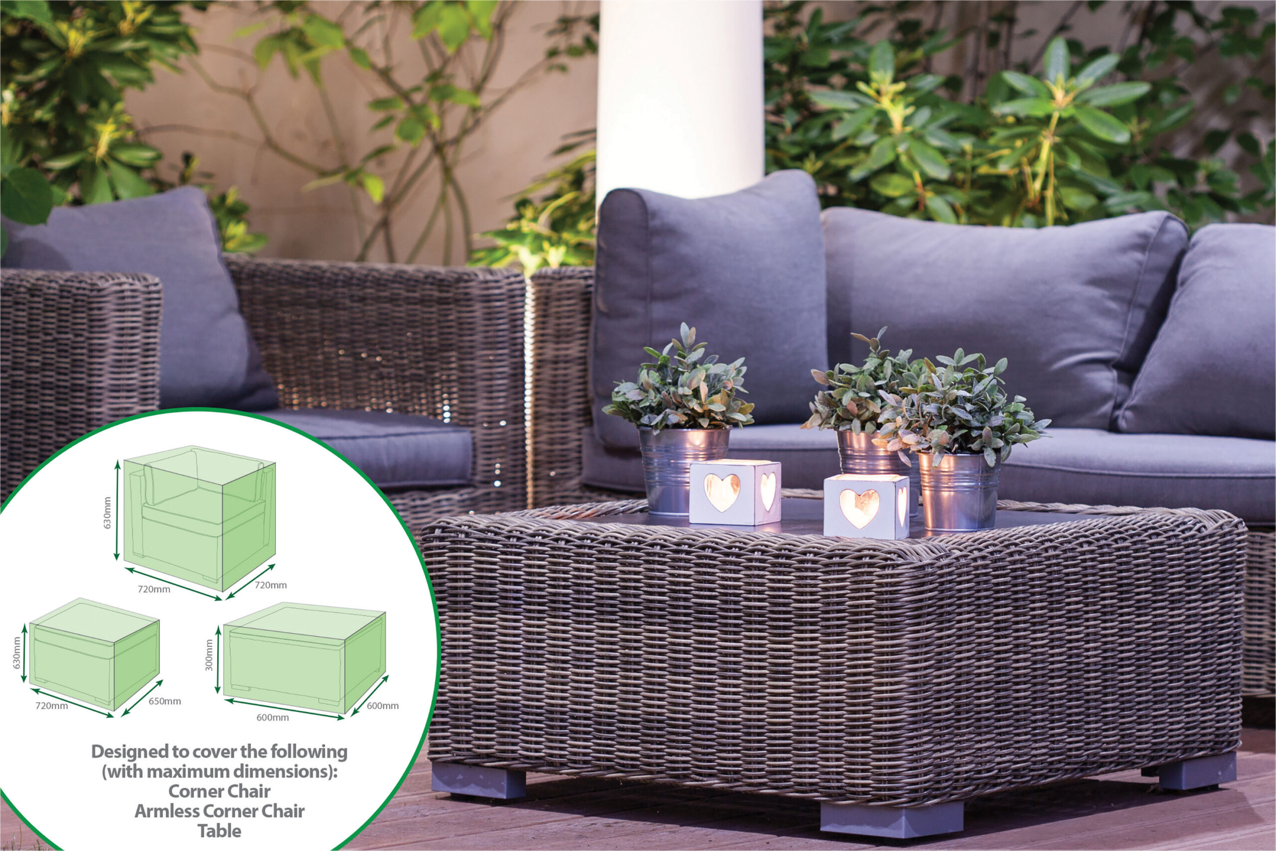 The 3 Piece Large Corner cover set from St Helens Home and Garden is the ideal way to protect your garden furniture from the elements in the winter months. Supplied in a green, water resistant polyethylene the product features eyelets and nylon cord to ensure a snug fit. Includes: Corner Chair Cover – 72x72x63cm Armless Corner Chair Cover – 65x72x63cm Table Cover – 60x60x30cm