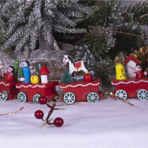 Make Christmas that little bit more special with this beautiful wooden train set, the set consists of an engine and 5 carriages all decorated in vibrant and festive colours. The train is adorned with festive figurines such as snowmen, father Christmas, a rocking horse and presents. Each carriage can be detached and arranged in whatever order you would like. This set would make a thoughtful Christmas gift but would also look great under your Christmas tree or displayed on a coffee table, window sill or fireplace. Made from high quality wood giving it a wonderfully old fashioned feel