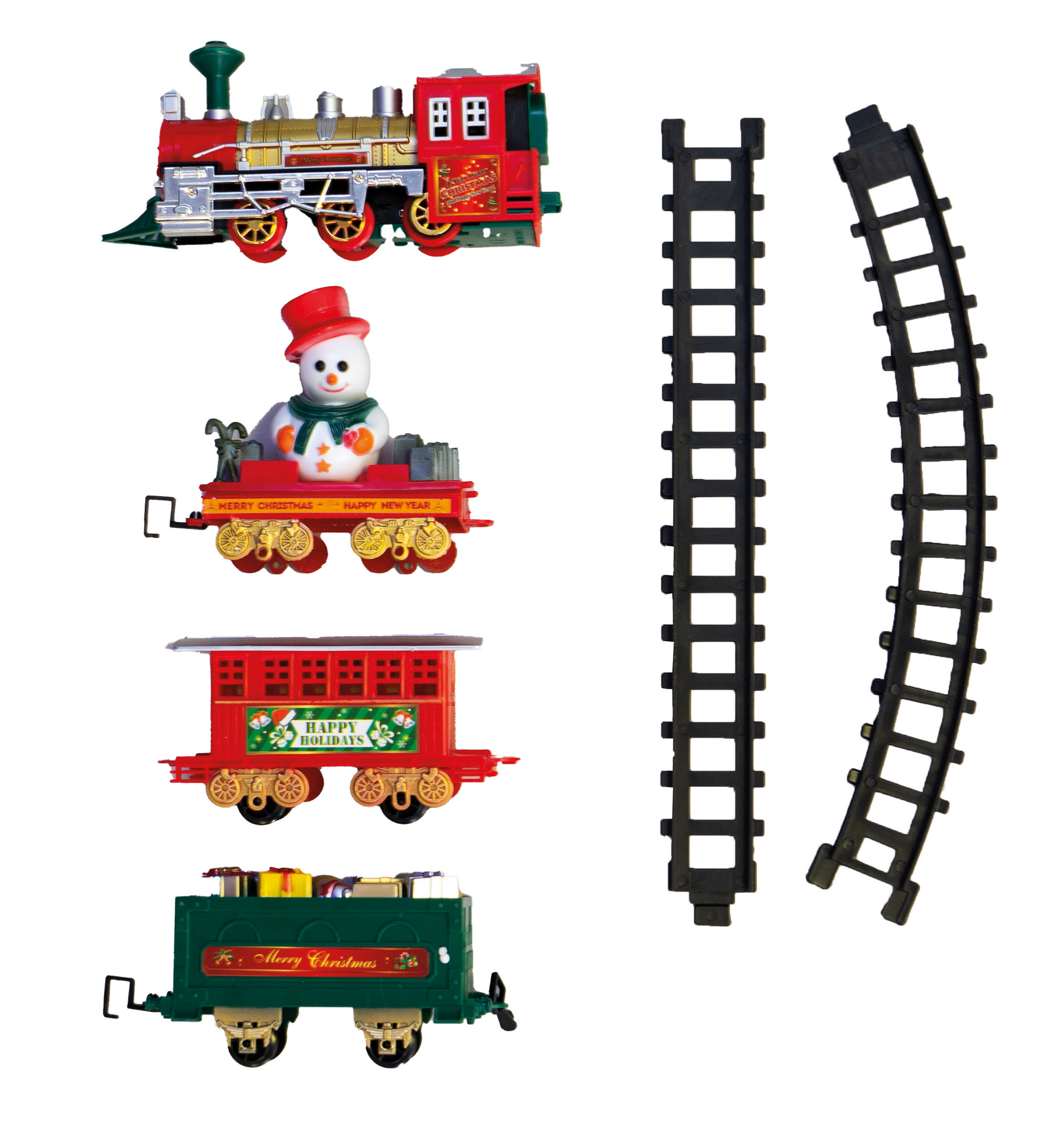 This beautifully presented train set is the ideal gift to delight your little ones at Christmas time. The set features a train with working headlight, 2 Christmas carriages, a truck carrying a snowman, 8 pieces of curved track and 2 pieces of straight track. The track is extremely easy to put together and take apart using the built in clips, the carriages go together with the attached hooks. Thanks to the combination of straight and curved track pieces your children can get creative and configure the track as they wish. The train is powered by 2x AA batteries (not supplied) that are placed inside the train and cannot be seen when in use. When the batteries are inserted turn the train on using the on/off switch and it will move around the track pulling the carriages behind with its headlight shining and playing jingle bells. The train will travel either forwards or backwards depending on which way you move the on/off switch.