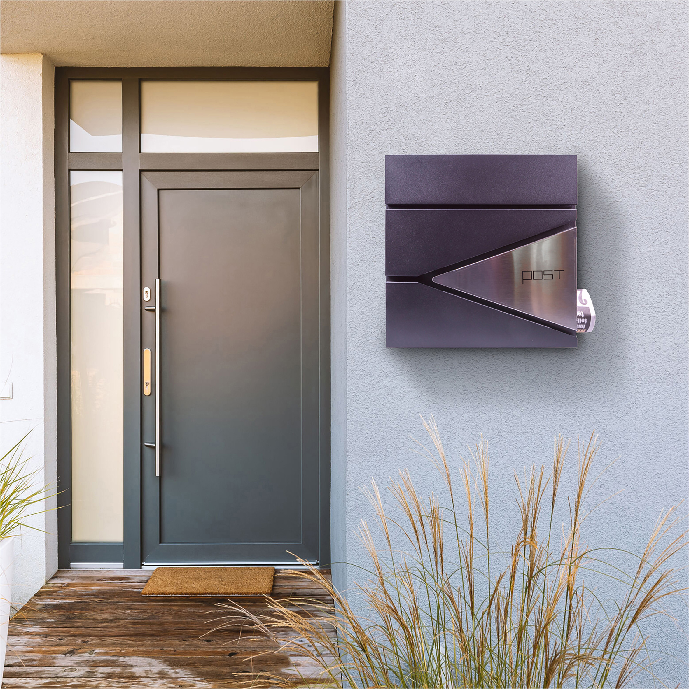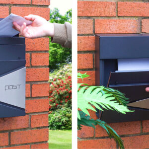 Wall Mount Lockable Letterbox. A large capacity, modern style letterbox, will accommodate large and small letters. Newspapers, catalogues and magazines can be placed in the slot at the base. The modern design makes this wonderful letterbox aesthetically pleasing as well as functional. Mail is dropped through the opening at the top of the box and can be retrieved at your own convenience using the supplied keys, there is a flap at the top opening to help keep your mail dry. This letterbox is designed to be wall mounted and has 4 pre drilled holes in the back, screws and rawl plugs are supplied for quick and easy installation. Made from high quality powder coated galvainsed steel to ensure it will withstand the elements for many years to come. Supplied with 2 keys.