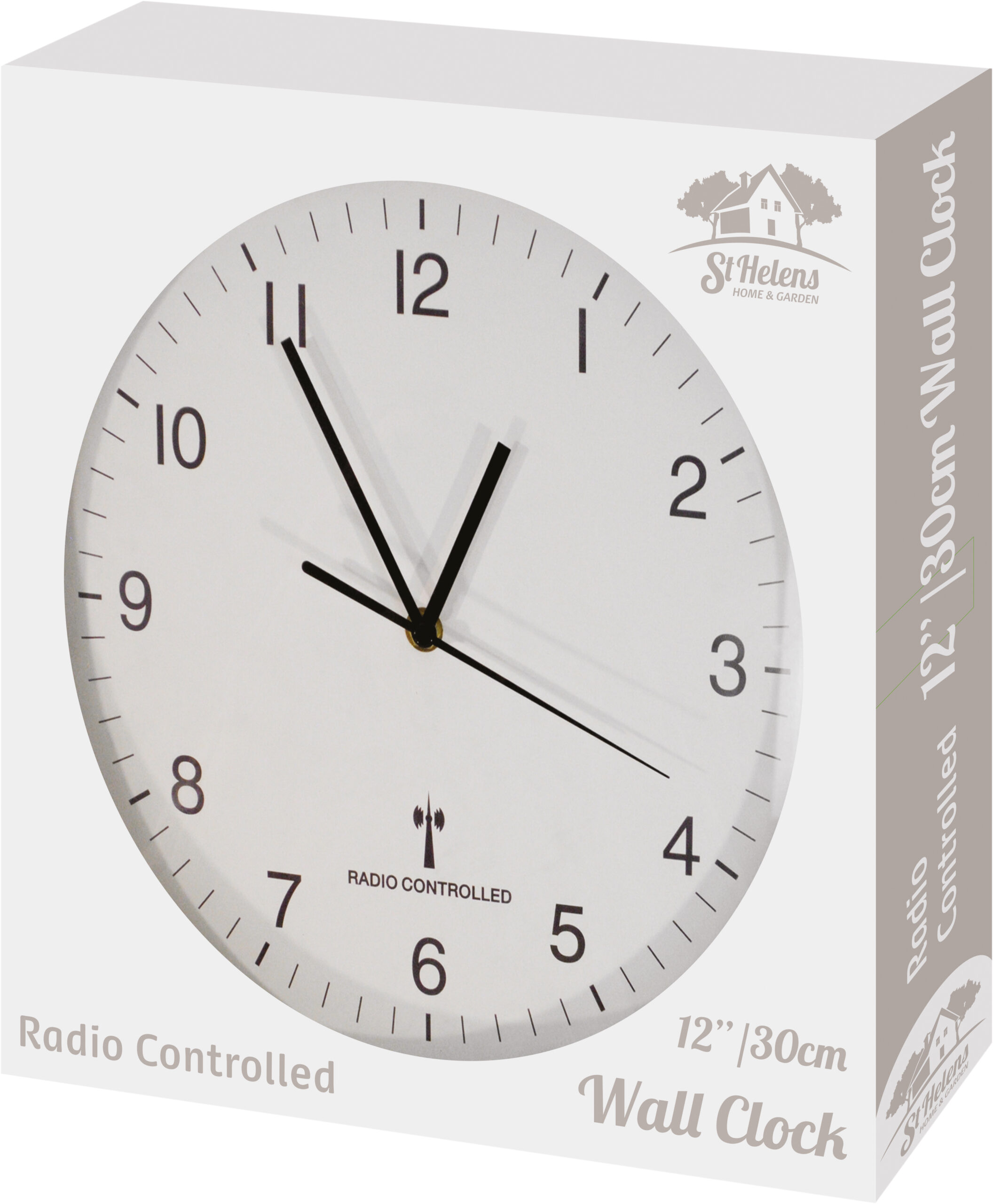 This radio controlled clock is supplied in an attractive white finish with a numerical dial. The radio controlled function means that the time on this clock is automatically set by a time code transmitted by a radio transmitter, the clock will always display the time accurately and will automatically update in Spring when the clocks go forward by one hour and in Autumn when the clocks go back by one hour. This Radio controlled clock can only be used in the UK and Ireland. Radio controlled clocks will only operate in buildings where the UK time code signal can penetrate. Metal clad buildings or those with re-enforced concrete are unlikely to be suitable for this product. In order to set the clock, hold either the Rec or Reset button located on the back of the clock for at least 5 seconds; release the button and then allow approximately 10 minutes for the clock to automatically set itself to the correct time.