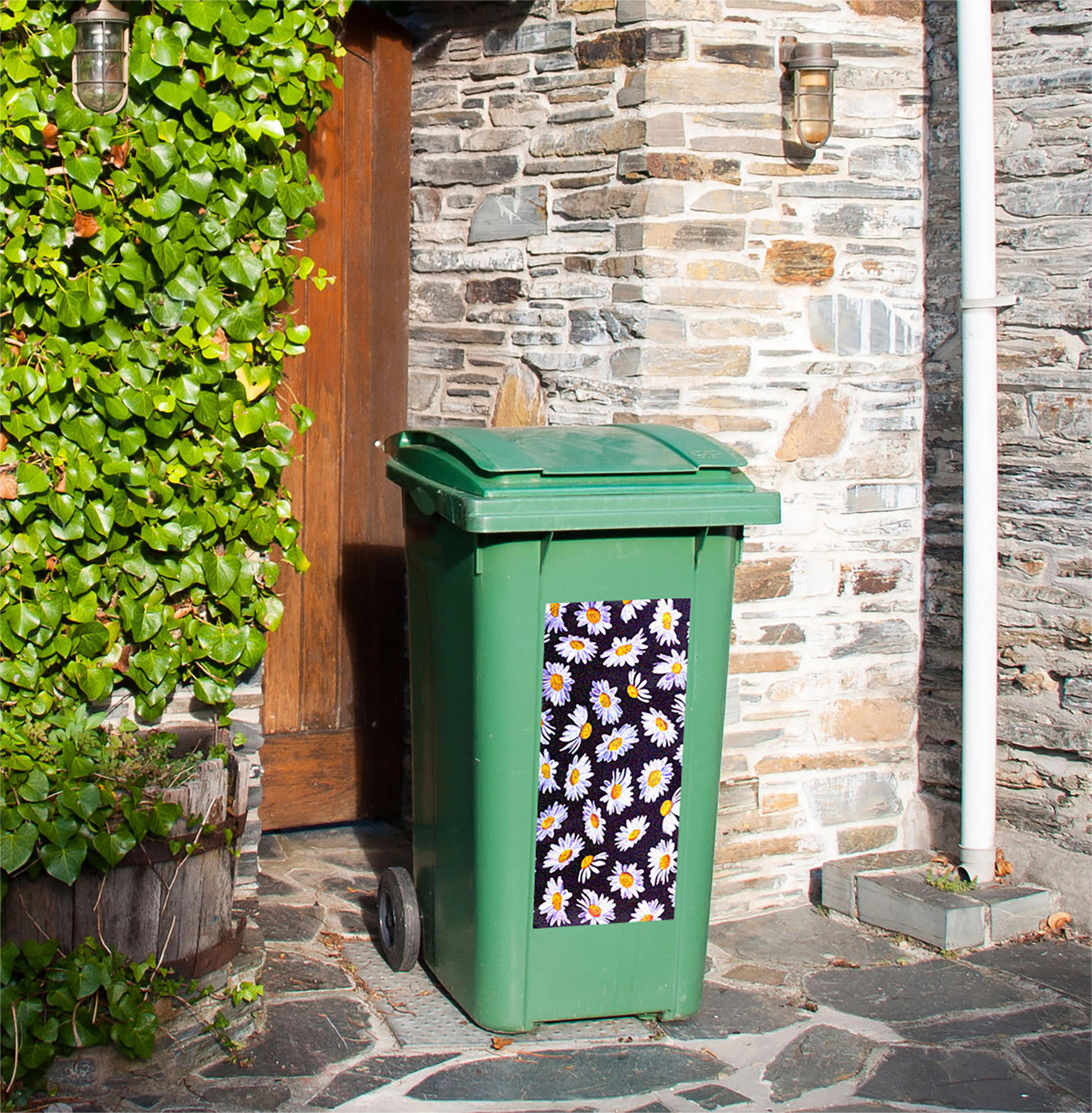 - CAMOURFLAGE: The sticker label’s dasies pattern adds a touch of charm to your outdoor space while effectively camouflaging your bins, blending them seamlessly into their surroundings.