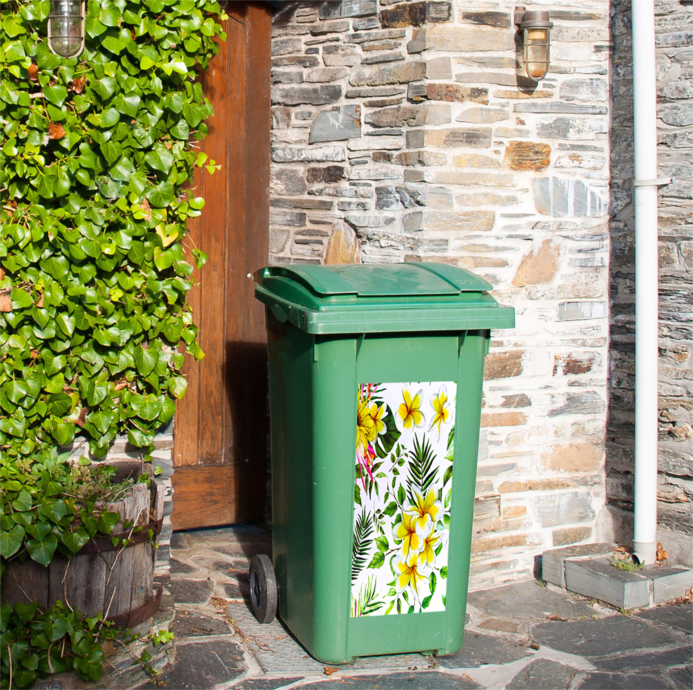 - CAMOURFLAGE: The sticker label’s summer flowers pattern adds a touch of charm to your outdoor space while effectively camouflaging your bins, blending them seamlessly into their surroundings.