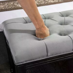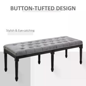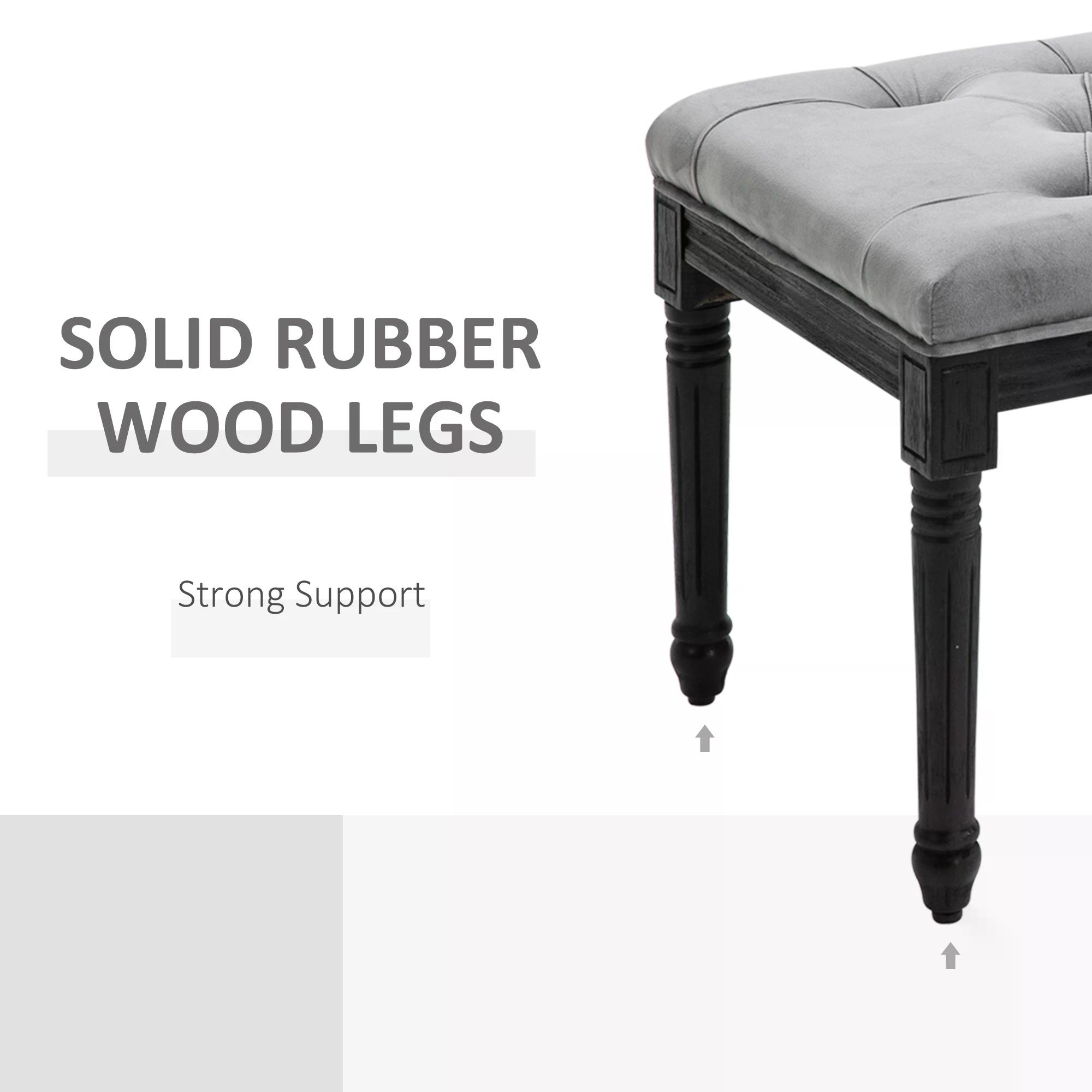 Bring this elegant stool bench into your home to make you the envy of all your guests. The top is padded to make it comfortable, with soft velvet-touch fabric for that added touch of glamour. Using rubberwood for the frame, the legs are carved into a vintage style, in a faded grey finish which complements the top cushion. It’s finished with button tufting on the seat, which keeps the fabric tight on the seat. A piece to cherish day in and day out.