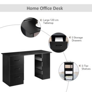 Maintain a contemporary and minimalistic workspace using HOMCOM’s desk with drawers. Crafted from durable particle board, this study table showcases a clean boxy design in a neutral colour, ideal for various home office environments. It offers three enclosed drawers and three open shelves, providing a balanced solution for work essentials and decor. The drawers feature convenient handles for a polished finish.
