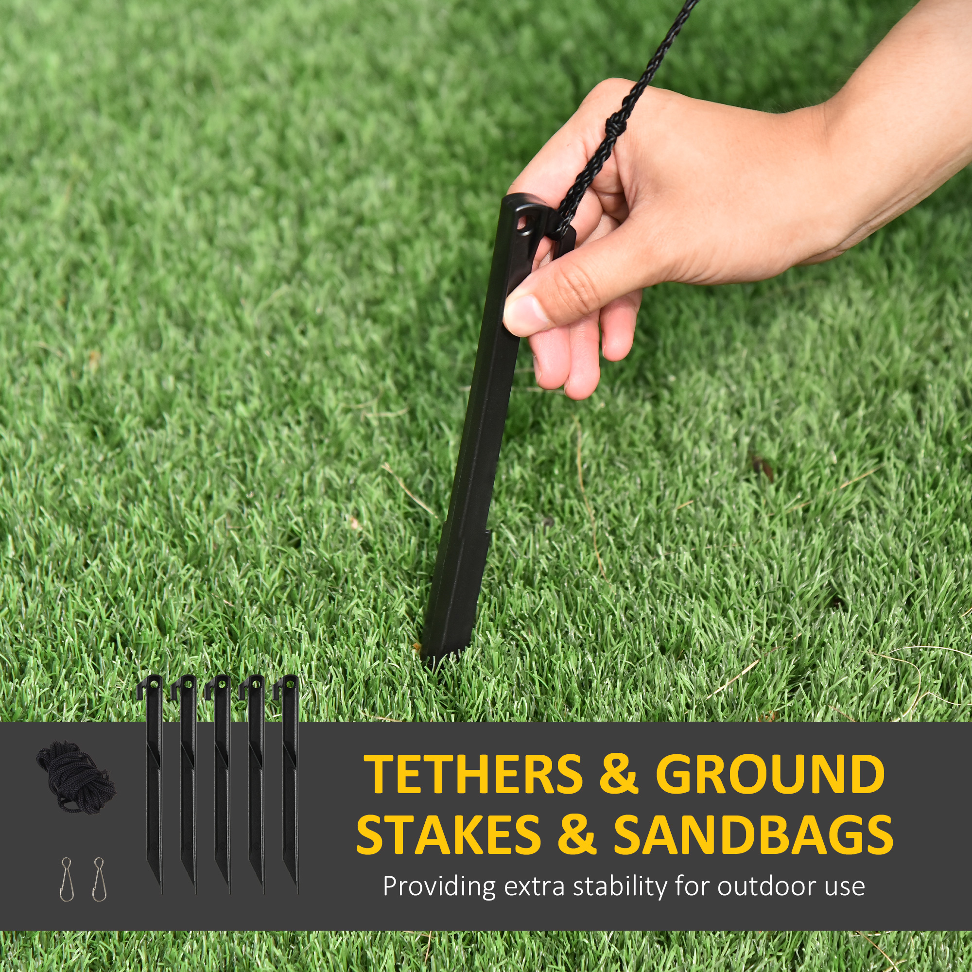 - Accessories: 5 x ground stakes, 2 x guy ropes and 2 x sandbags