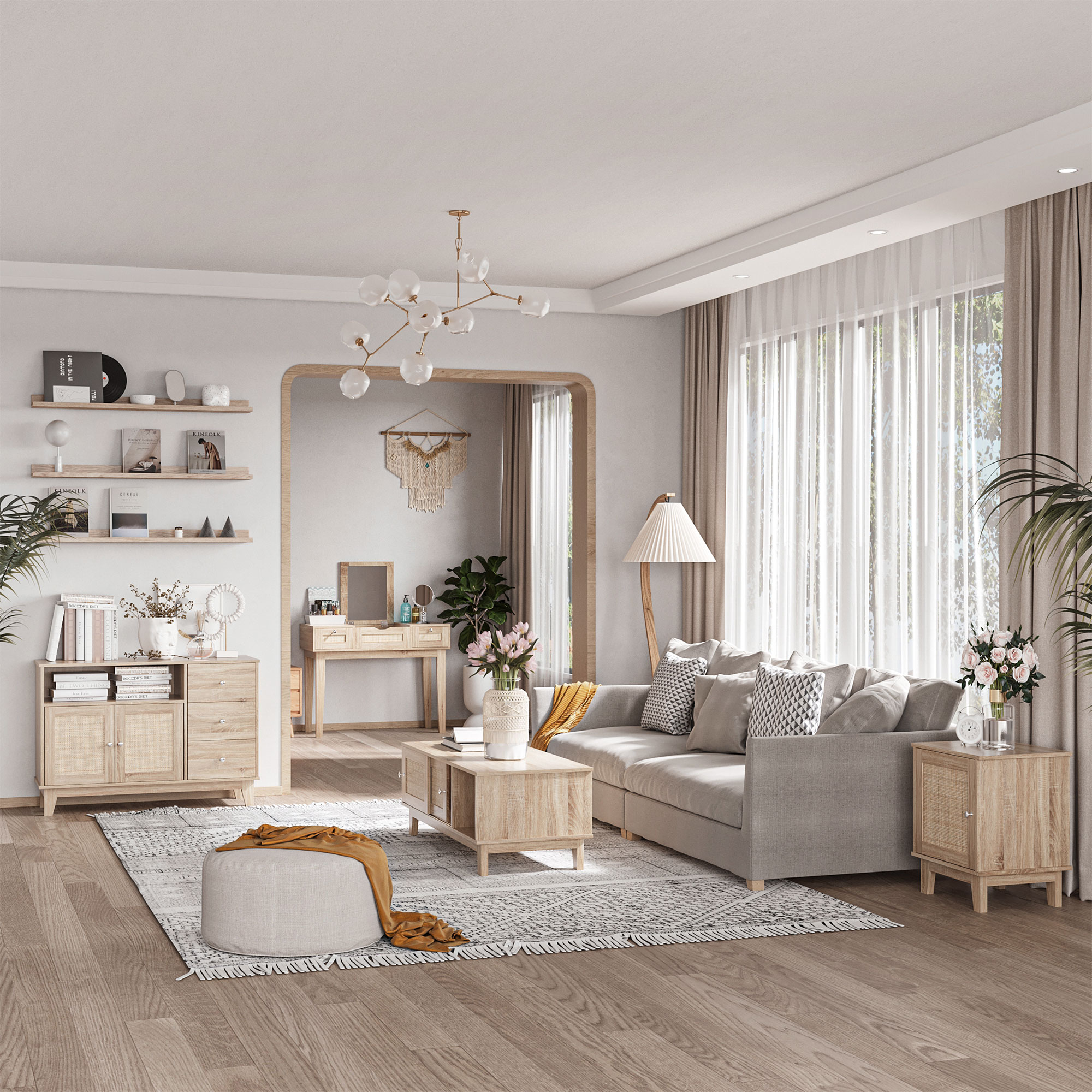 A natural look for a natural home look. This small HOMCOM table blends a wood-effect structure with a front rattan panel – bringing the beauty of nature inside this season. A small cubic design is great for fitting next to your bed or sofa; the structure made from particle board for durability. The inside middle shelf gives you two storage compartments; it is adjustable to different levels to suit you. Complete with polished metal handle.