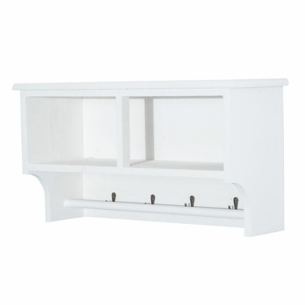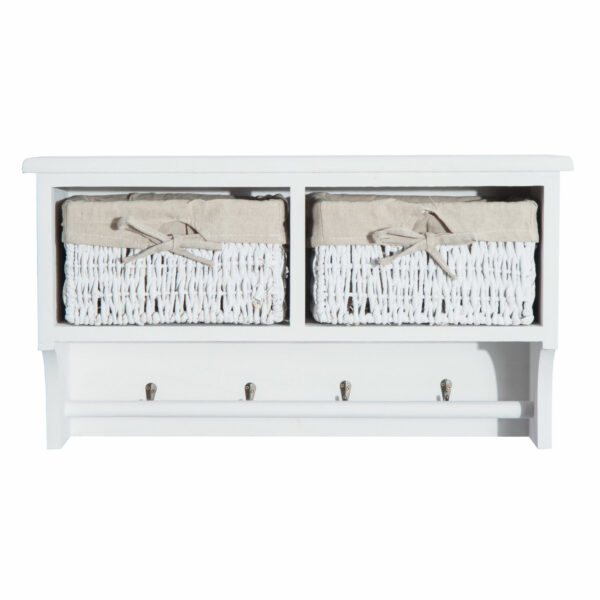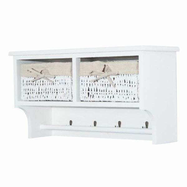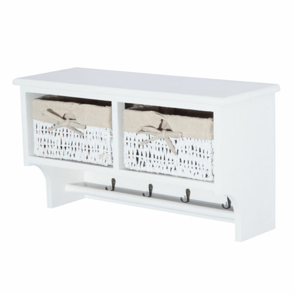 This HOMCOM wall mounted storage shelf is a great item to have in your entry or hallway for your home or office. It comes in a modern design with four metal hooks to hang your coats and two cube shelves with two pullout baskets. These will be a great place to store your gloves, scarves bags and more. The unit gives you lots of storage and will be an ideal solution to match your home or office d??cor.