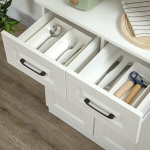 - Two drawers of this kitchen dresser are great for knives, forks and other small kitchen utensils.