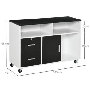 - Large desktop for printer. Lots of storage capacity with 3 shelves, 2 drawers and a cabinet for files, notebook, pens, magazines and other office supplies