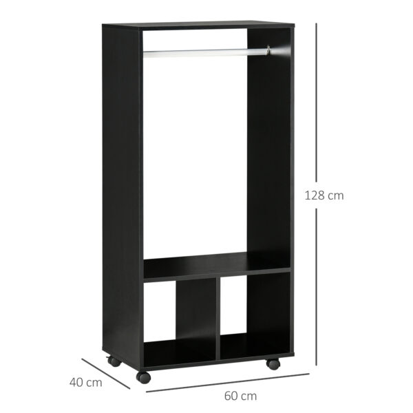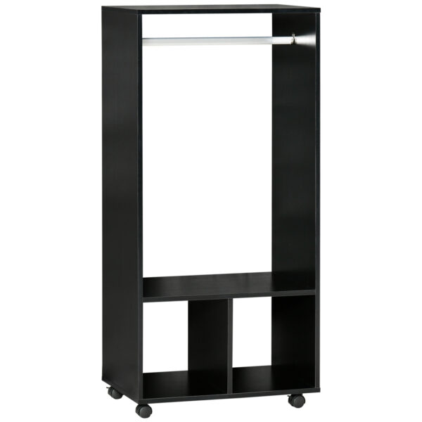 This mobile open wardrobe is perfect for storing your clothes and keep it tidy and organized. The clothing rack comes complete with a hanging shelf and two open cubbies, offering sufficient space to meet all storage needs. The four wheels under the closet rack enable you to move with ease to anywhere you want, two of which are lockable to keep in place when needed.