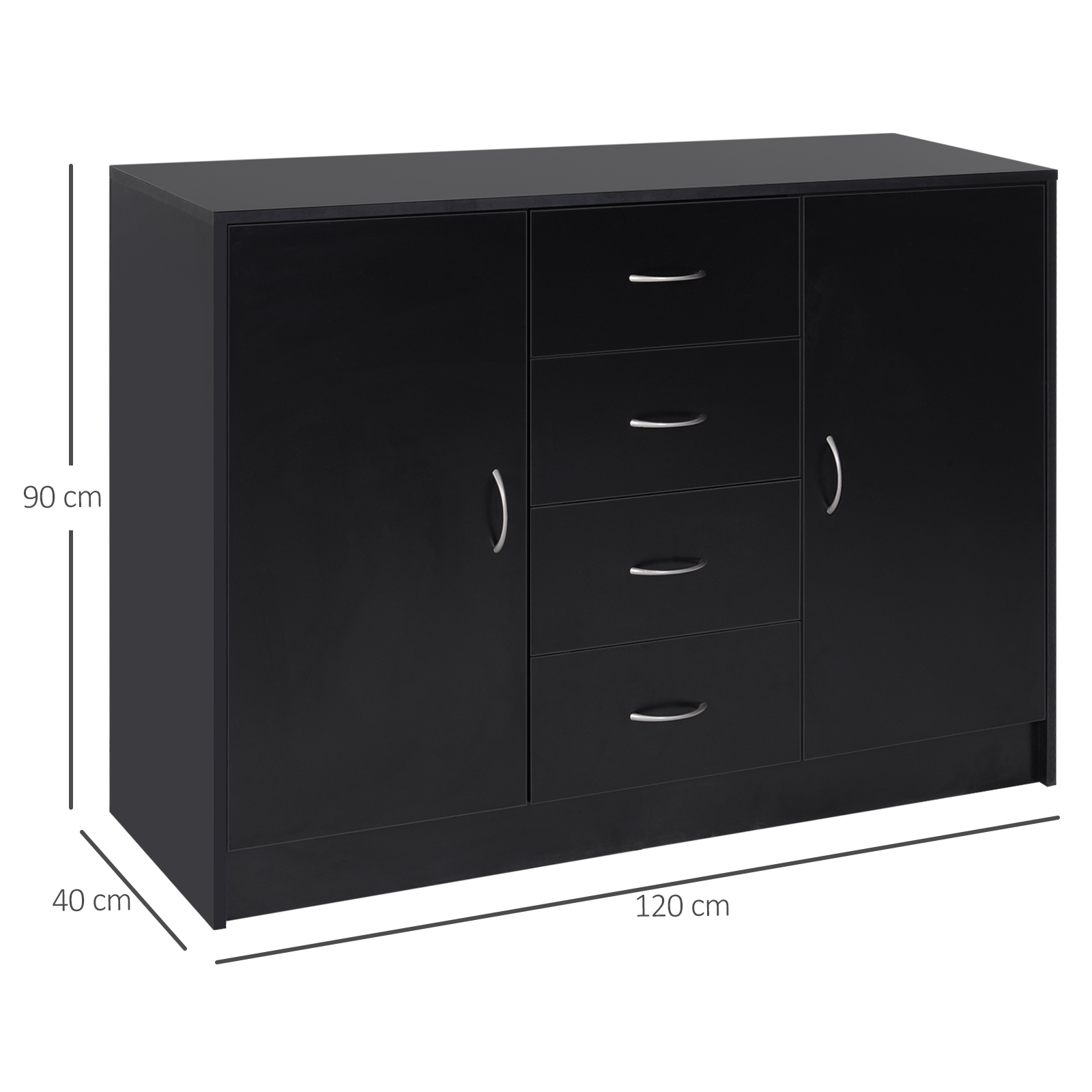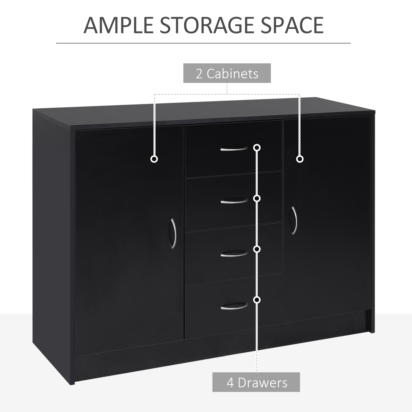 Featuring a simple but elegant appearance, this HOMCOM storage cabinet offers you ample storage space and helps you organize your things easily. With a wide countertop, 2 cabinets and 4 drawers, you can classify your things with ease. This side cabinet also serves as an entryway console, coffee bar and sideboard. This storage sideboard is worth your considering.