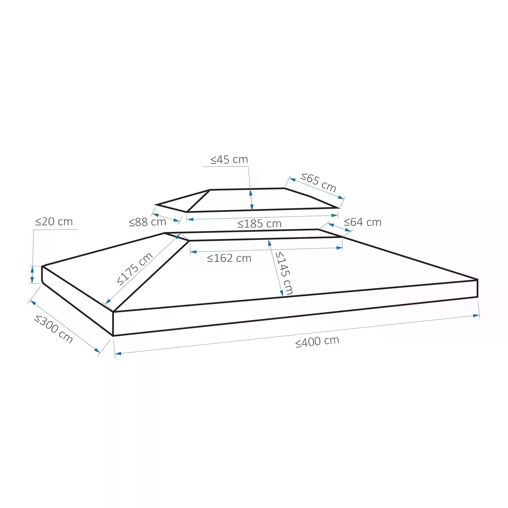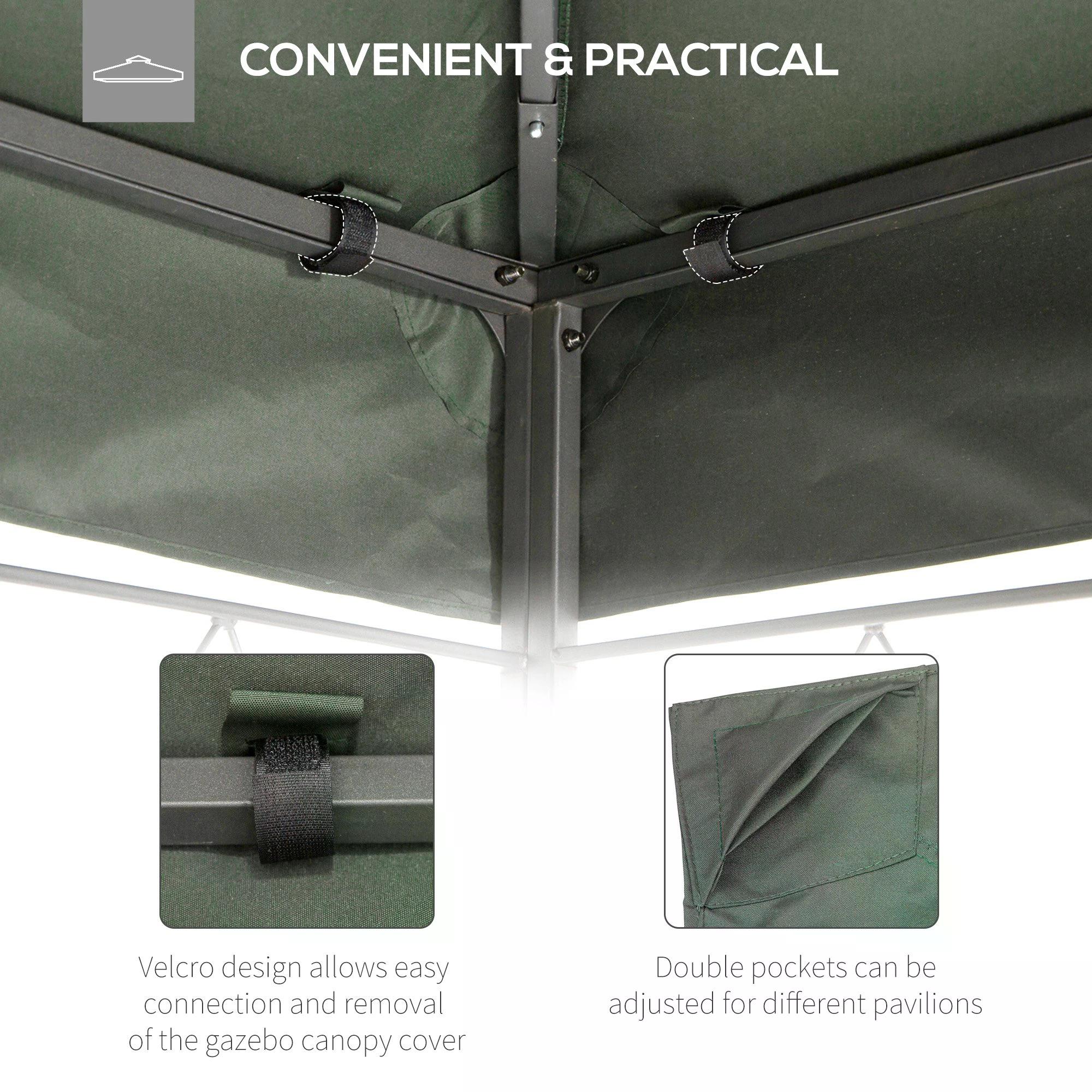 Bringing your gazebo back to life is super easy with this gazebo waterproof cover from Outsunny. Made from high quality polyester with a PA coating for durability and protection against the sun, it features a two-tier rooftop design to allow air to circulate when in use, alongside ten holes for water drainage. Our gazebo canopy replacement will fit 2.9-3Wm x 3.9-4Lm size frames (Outsunny sku 01-0153).