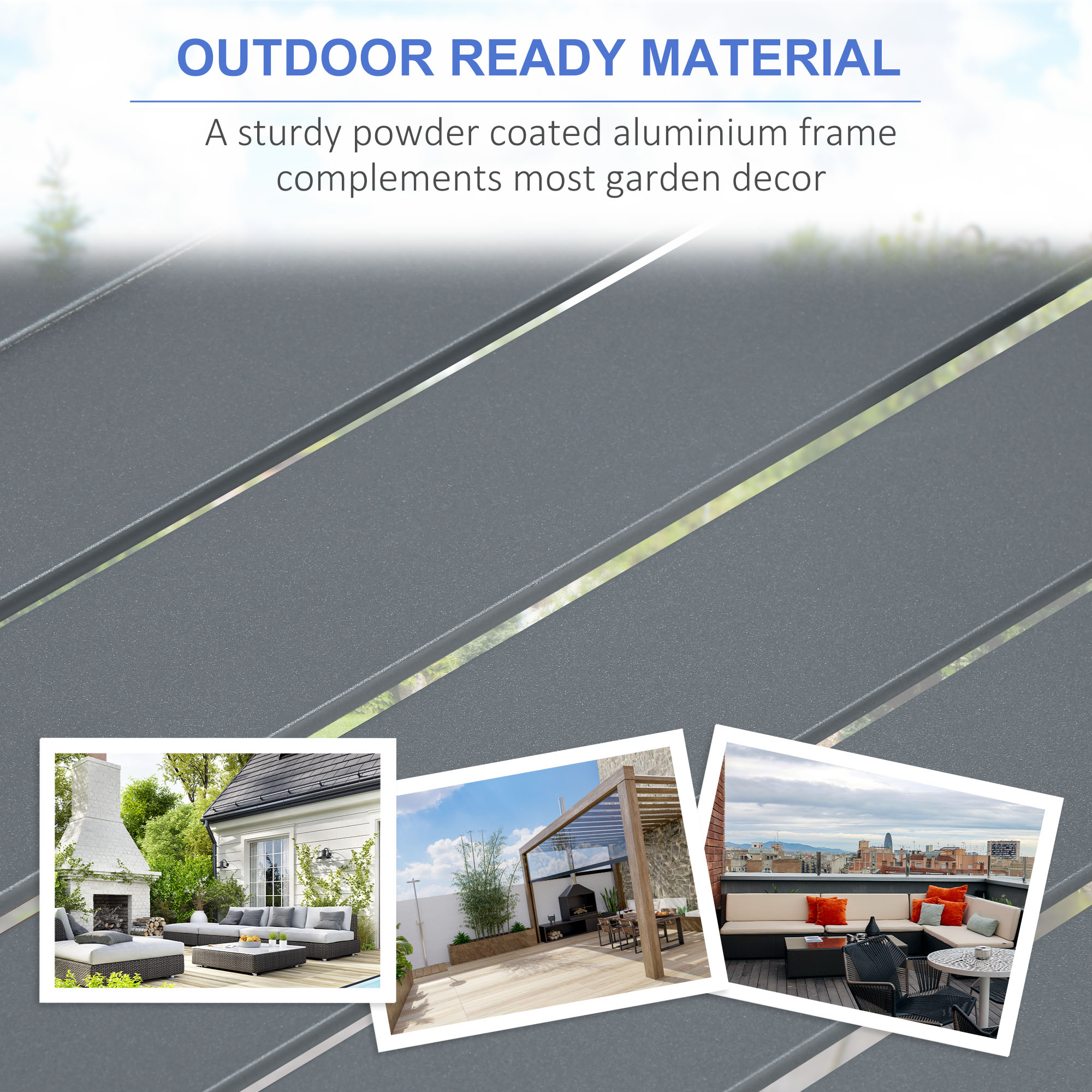 Relaxing evening times need never be cold again – do it in all with this Outsunny outdoor aluminium garden sofas set, with fire pit table. The two loveseats, corner seat and two footstools mean there’s room for your favourites to gather round, with the table giving you somewhere to eat and drink from. In the middle of the table, there’s a fire pit: provides up to 50,000 BTU power – plenty of heat for the colder climes. There’s a wind guard for the fire, so you can keep peace of mind, at all times.