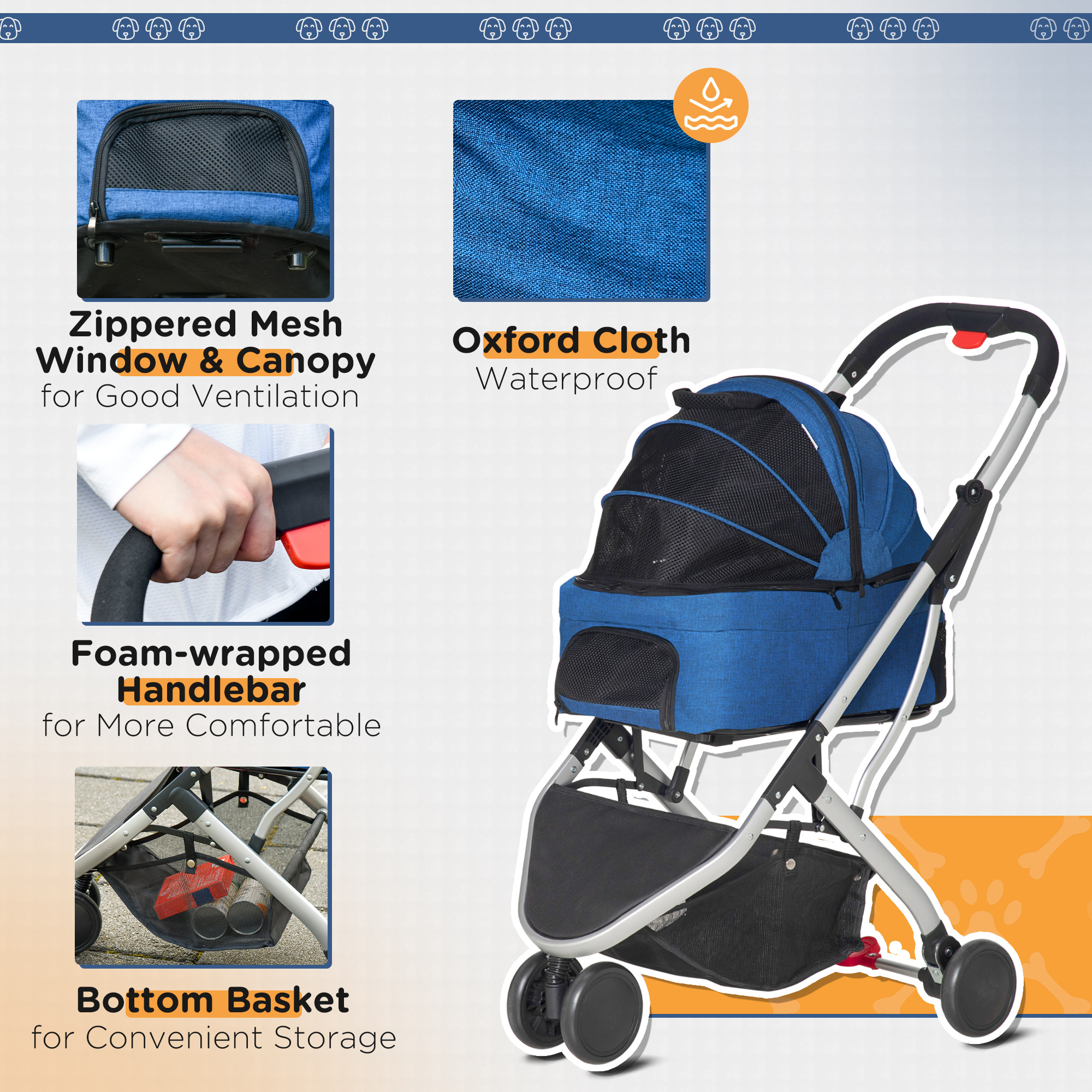 - Solid construction with Aluminium frame and 900D Oxford cloth, make this stroller a sturdy house for your friends