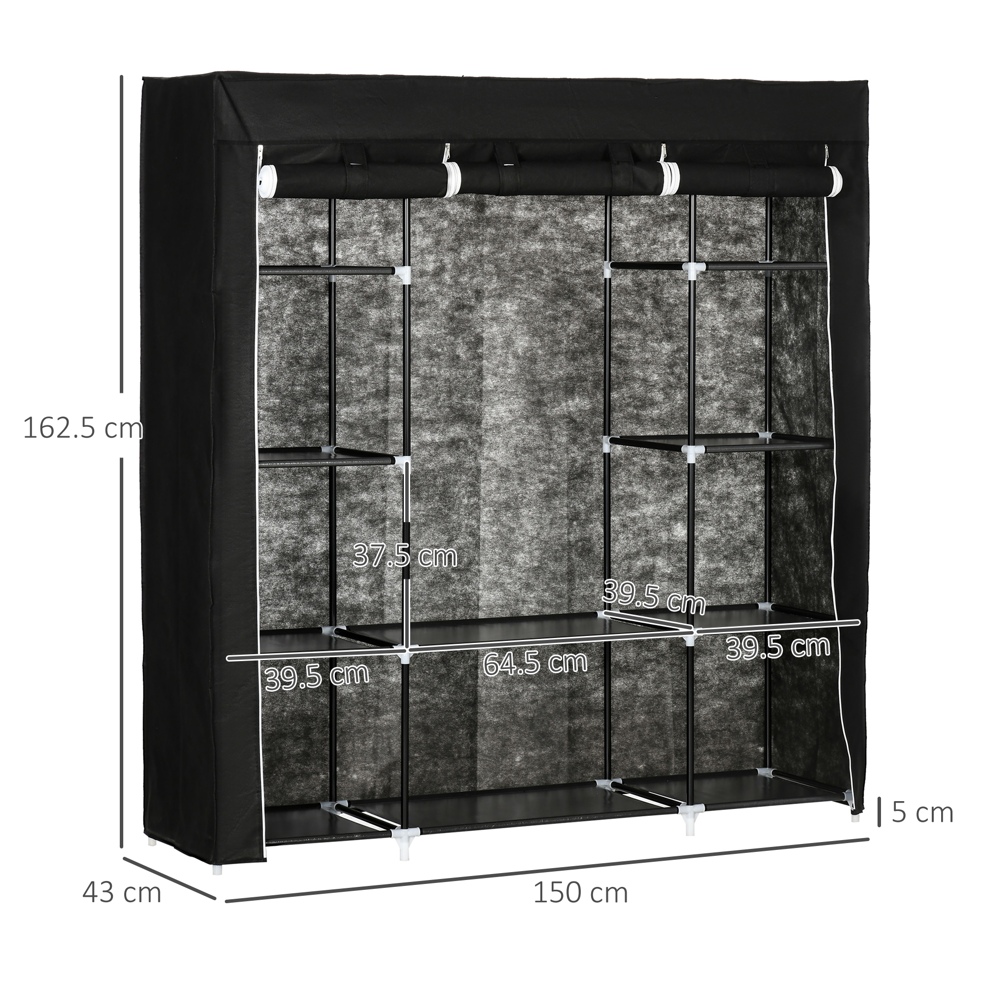 A cloth wardrobe is a great temporary – or even permanent piece for any bedroom and living space. This HOMCOM piece comes with a hanging rail for longer garments, with ten shelves to hold plenty of folded pieces. A powder coated steel frame for a strong core, which supports up to 55kg. It comes with a fabric cover to offer protection when needed, with three roll-up strip doors to finish.