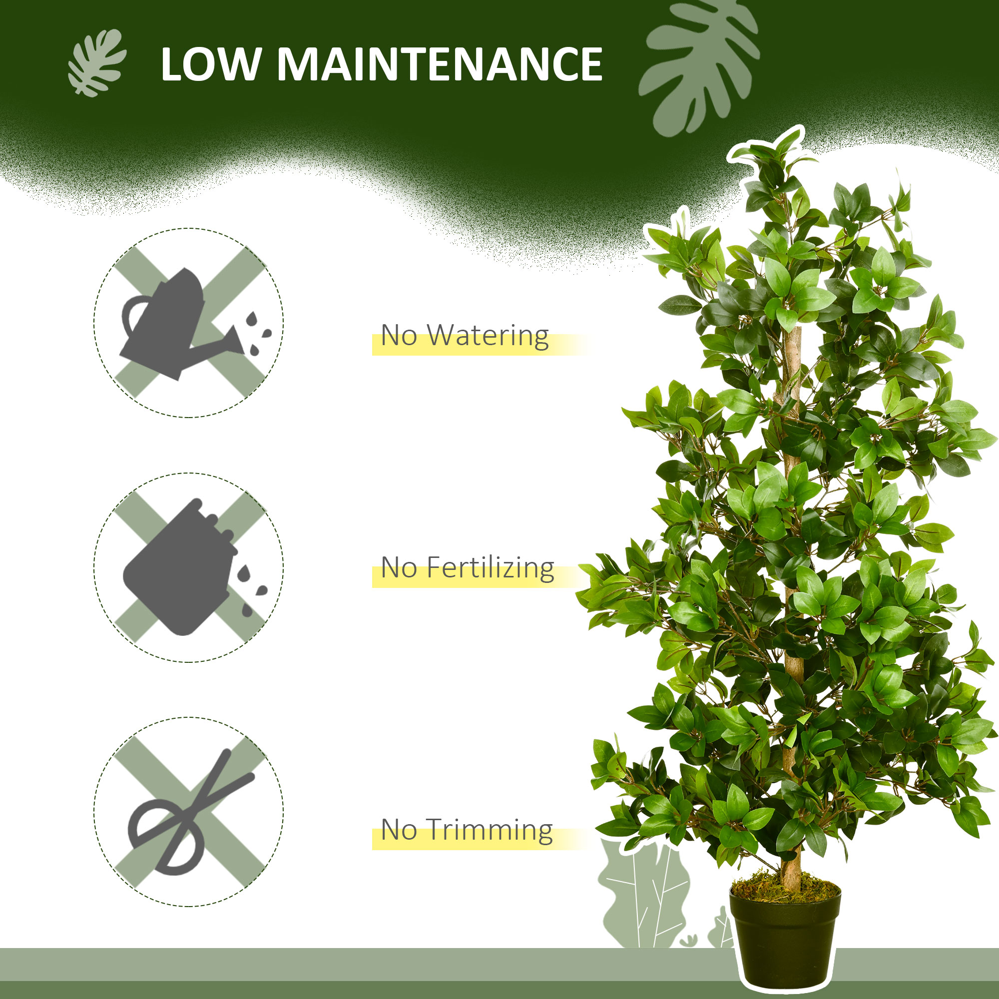 - Faux Laurel plant design, with 1,350 leaves for a full look