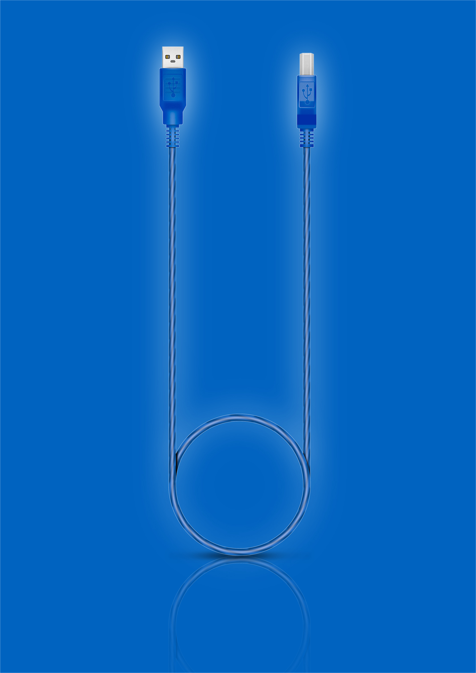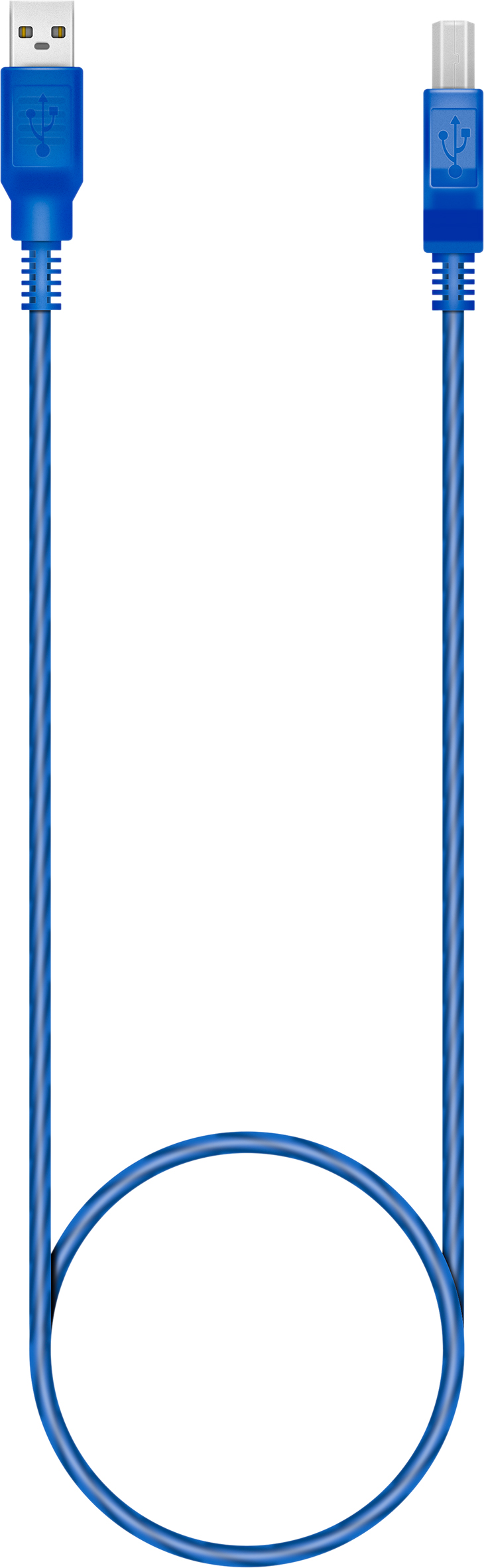 Standard USB male A to USB male B lead supplied in bag and header packaging.