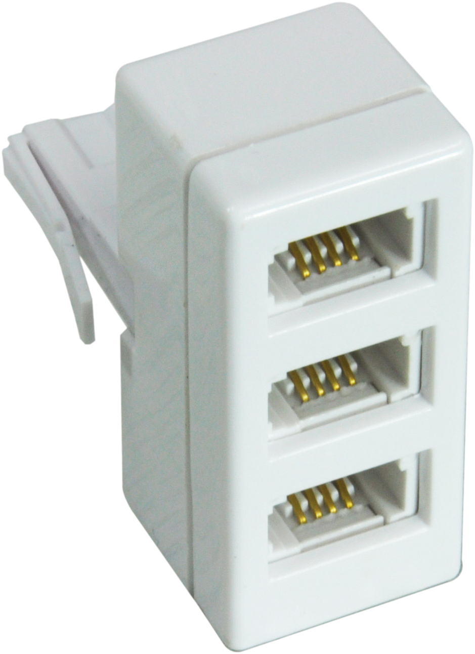 3 way adaptor (4 wire) Converts a single telephone socket into a treble socket outlet. Ideal for telephone, fax and modem (requires filter).