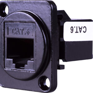 Chassis Mount D-Series compatible Cat 6 socket TQ toolless IDC connections. Supplied with fixing screws.