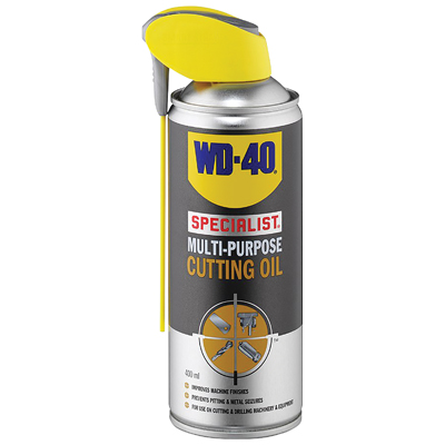 WD-40® Specialist® Multi-Purpose Cutting Oil||Specially formulated to maximise the life of cutting and drilling equipment||Works under extreme pressure||Lubricates to reduce tip welding||Improves machine finishes||Prevents pitting and metal seizures||Improves performance and extends the life of tools