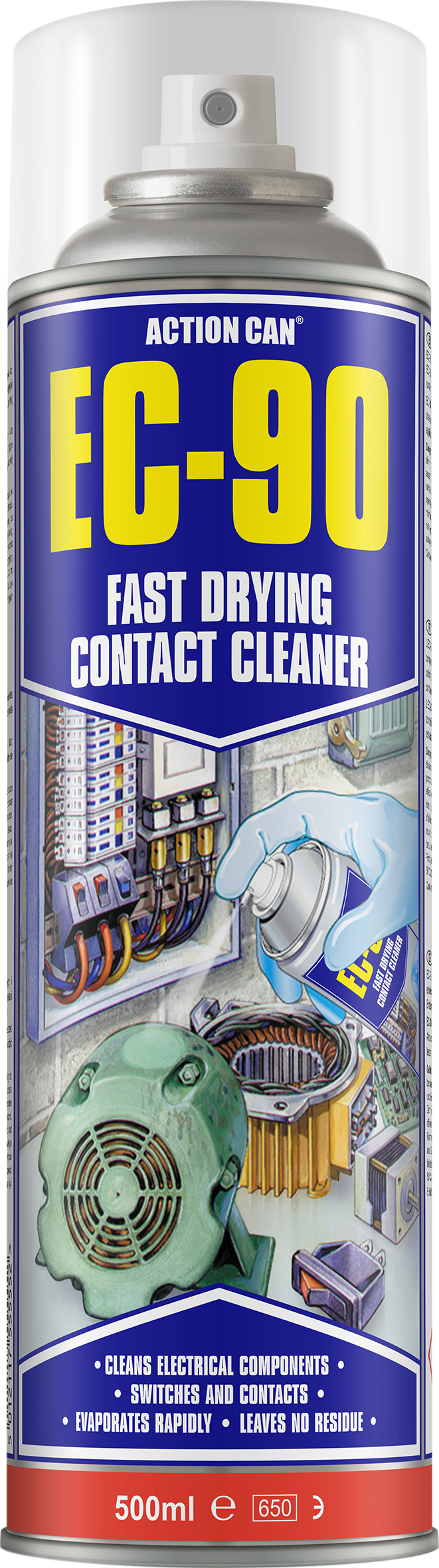 EC-90 is a fast evaporating electrical cleaner that does not leave a residue, requires no rinsing or wiping, and quickly cleans hard to reach delicate electronic and electrical components. EC-90 effectively removes deposits and tarnish, improving conductivity and penetrating into switches and contacts, preventing electrical faults. Safe to use on all metals, most rubber, plastics and coatings. Use on electric motor contacts, generator and transformer windings, electrical parts, switch-gear, fuses and high-tension contacts.