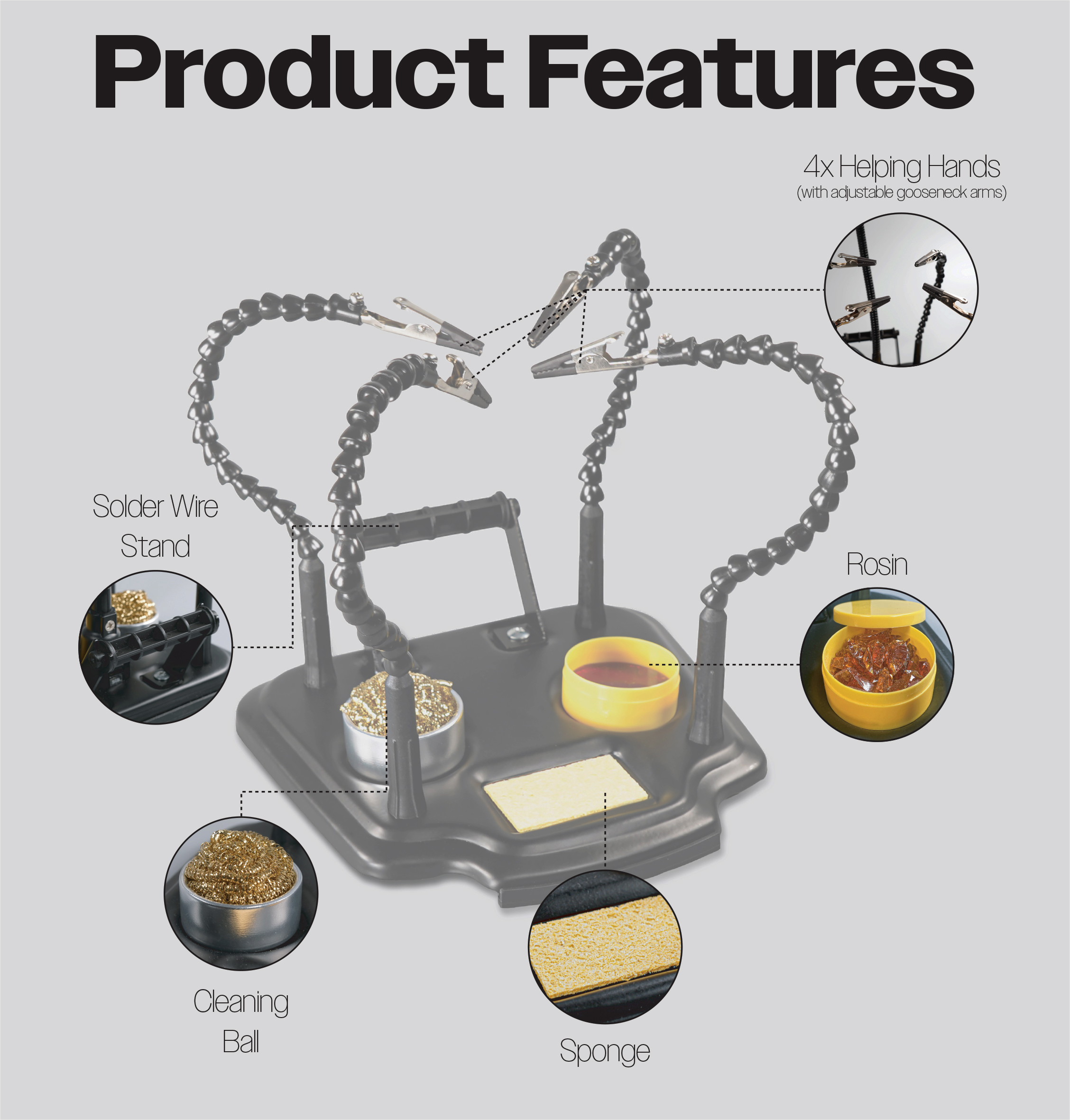 - Acts as another pair of hands: Use your hands for soldering or other precision work while this unit holds your item in place.
