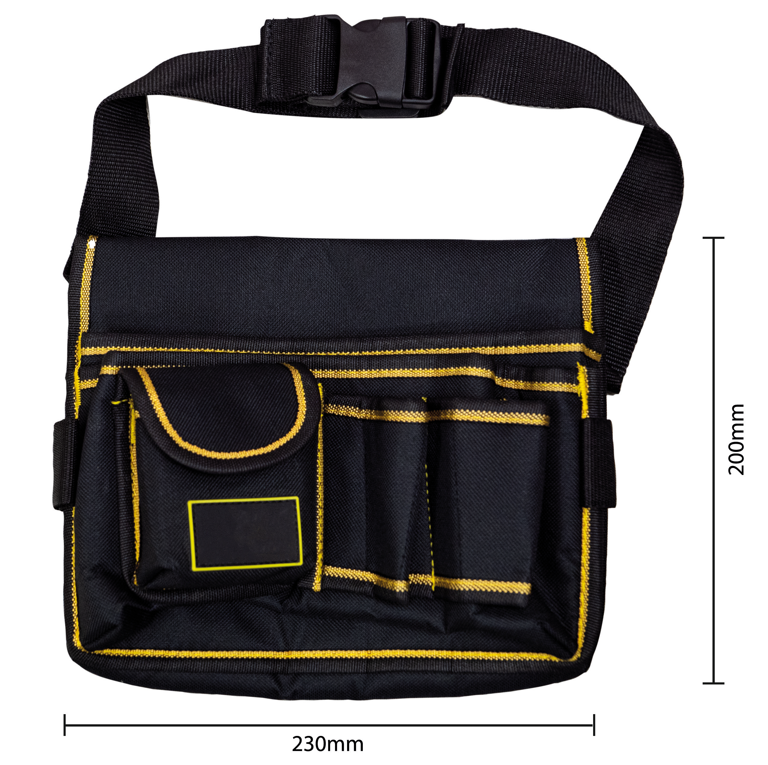 The belt tool pouch has 6 different sized pockets and a built in metal loop making it perfect to store and organize any manner of tools such as hammers, screw drivers, pliers, wrenches, tape measures, electricians tape etc. Perfect for electricians, engineers, craftsmen and DIY enthusiasts. Size adjustable waistband, max waist size of 125cm. Made from heavy duty, tear resistant 1680D Oxford Cloth.