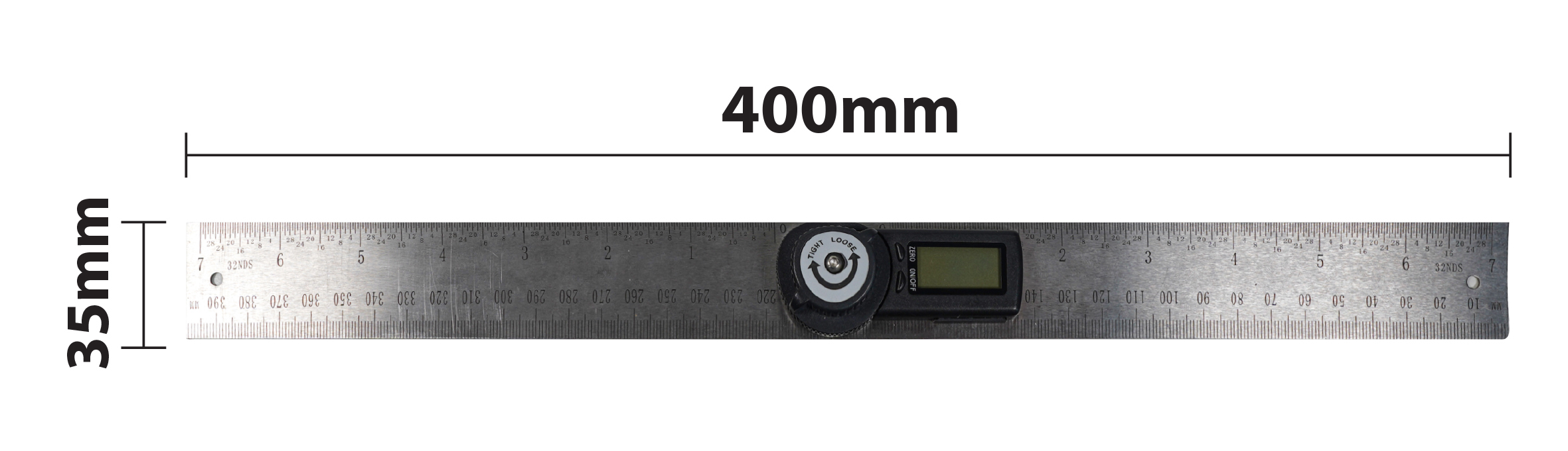 Digital Angle 400mm Metal Ruler, a revolutionary tool that seamlessly merges traditional measurement precision with cutting-edge technology. This digital ruler is equipped with a clear LCD display and an angle lock, providing unparalleled accuracy and convenience for a variety of applications.