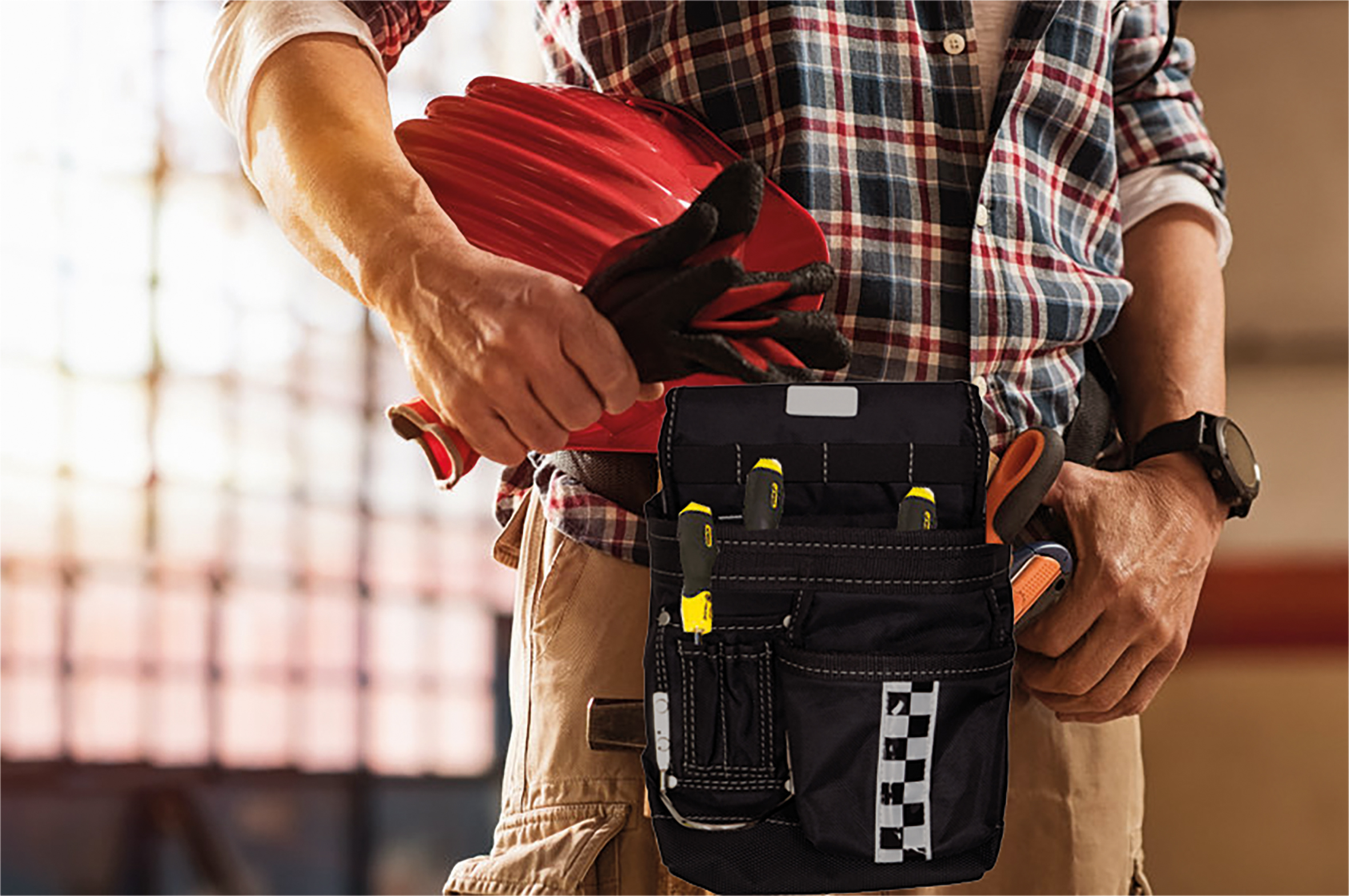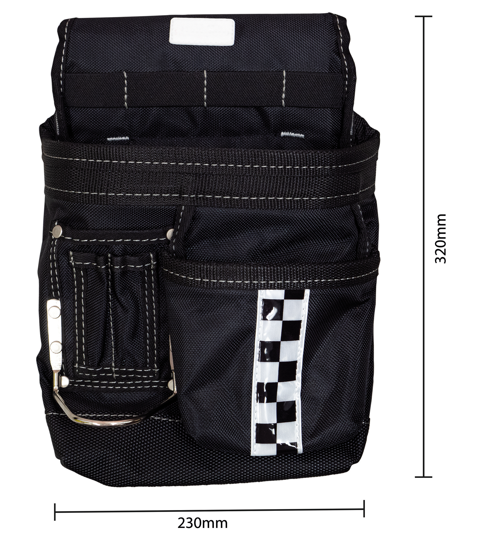 The adjustable waist tool bag has 3 different sized pockets and 4 hanging slots making it perfect to store and organize any manner of tools such as hammers, screw drivers, pliers, wrenches, tape measures, electricians tape etc. Perfect for electricians, engineers, craftsmen and DIY enthusiasts. Made from heavy duty, tear resistant 600D Oxford Cloth.