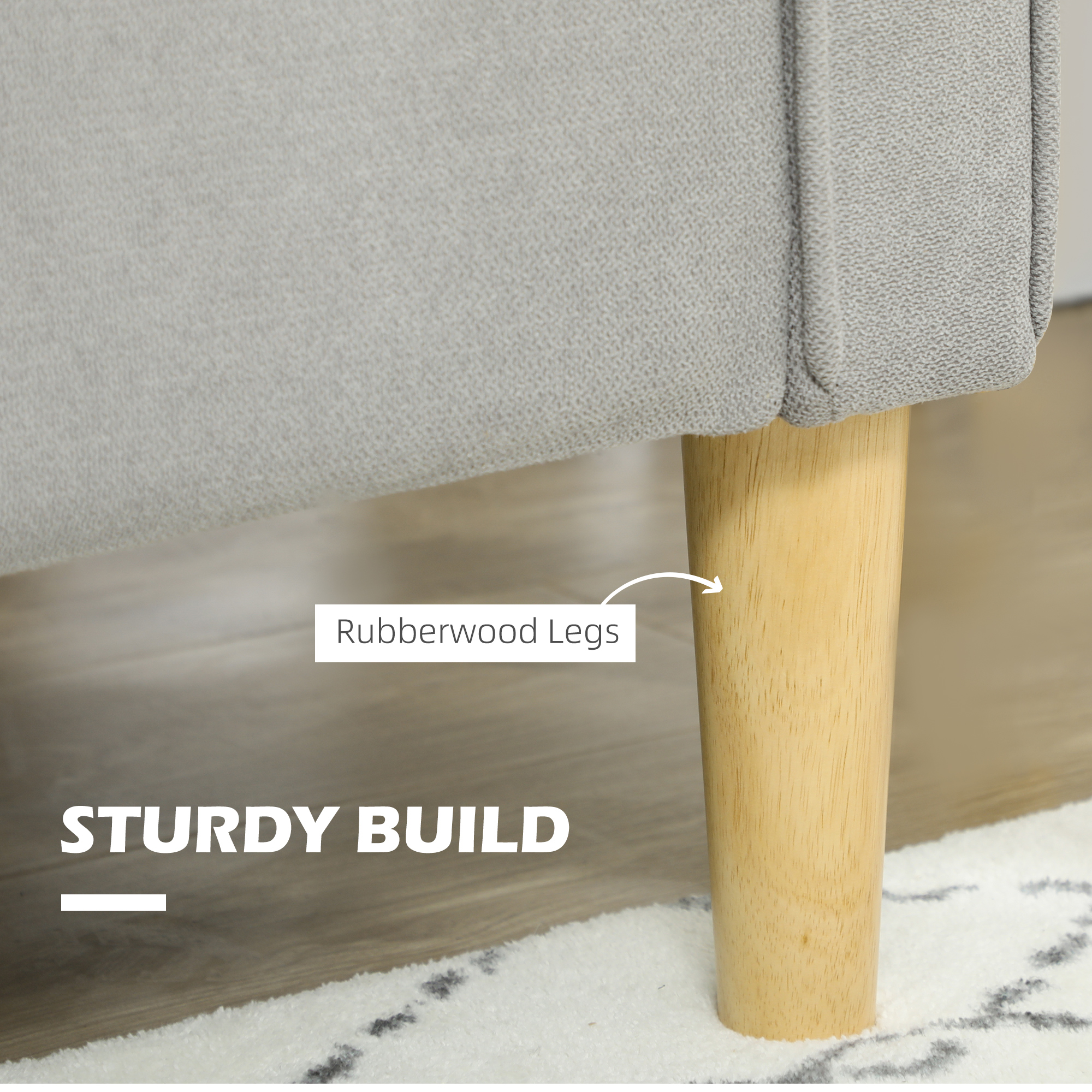 - Eucalyptus wood frame and rubberwood legs ensure a solid structure