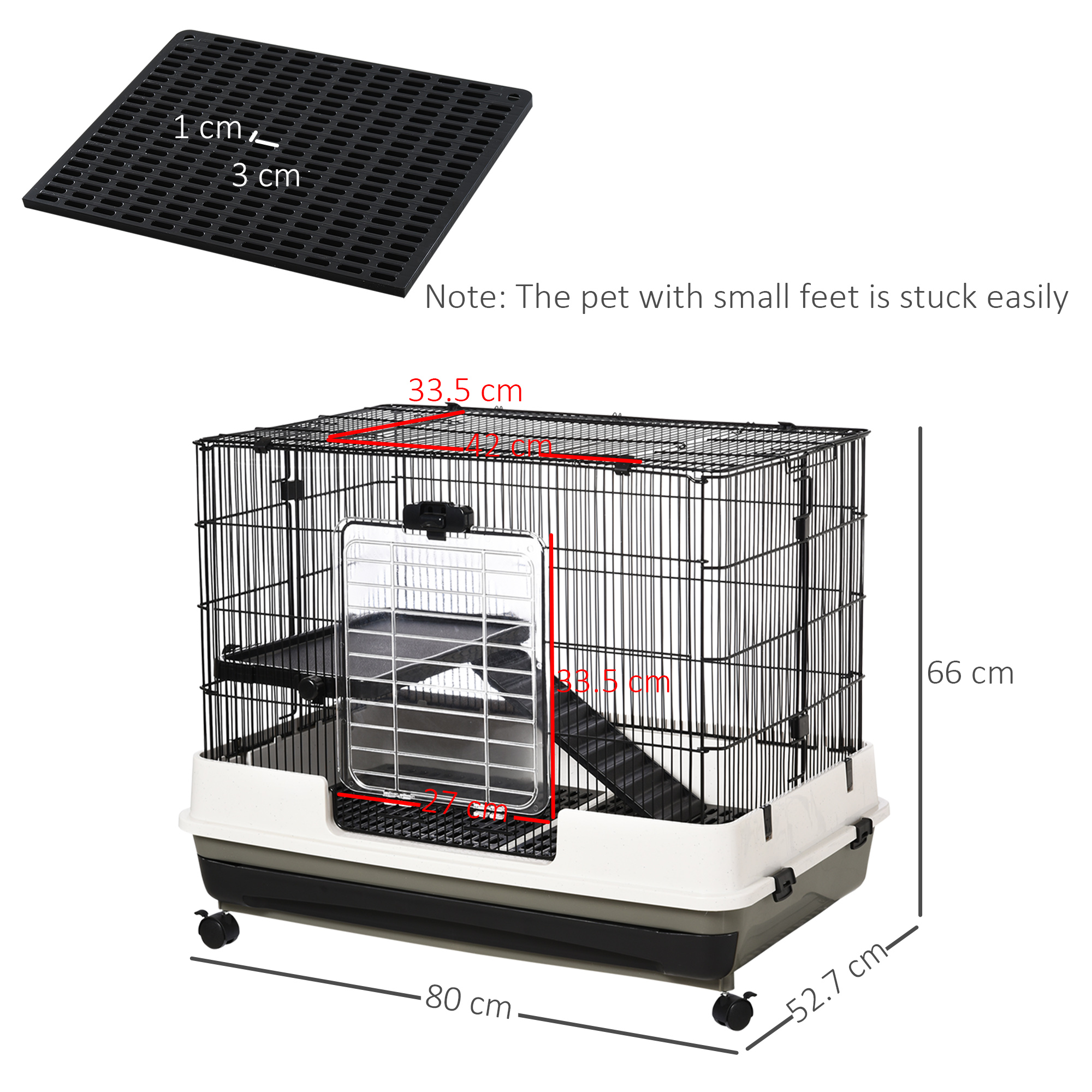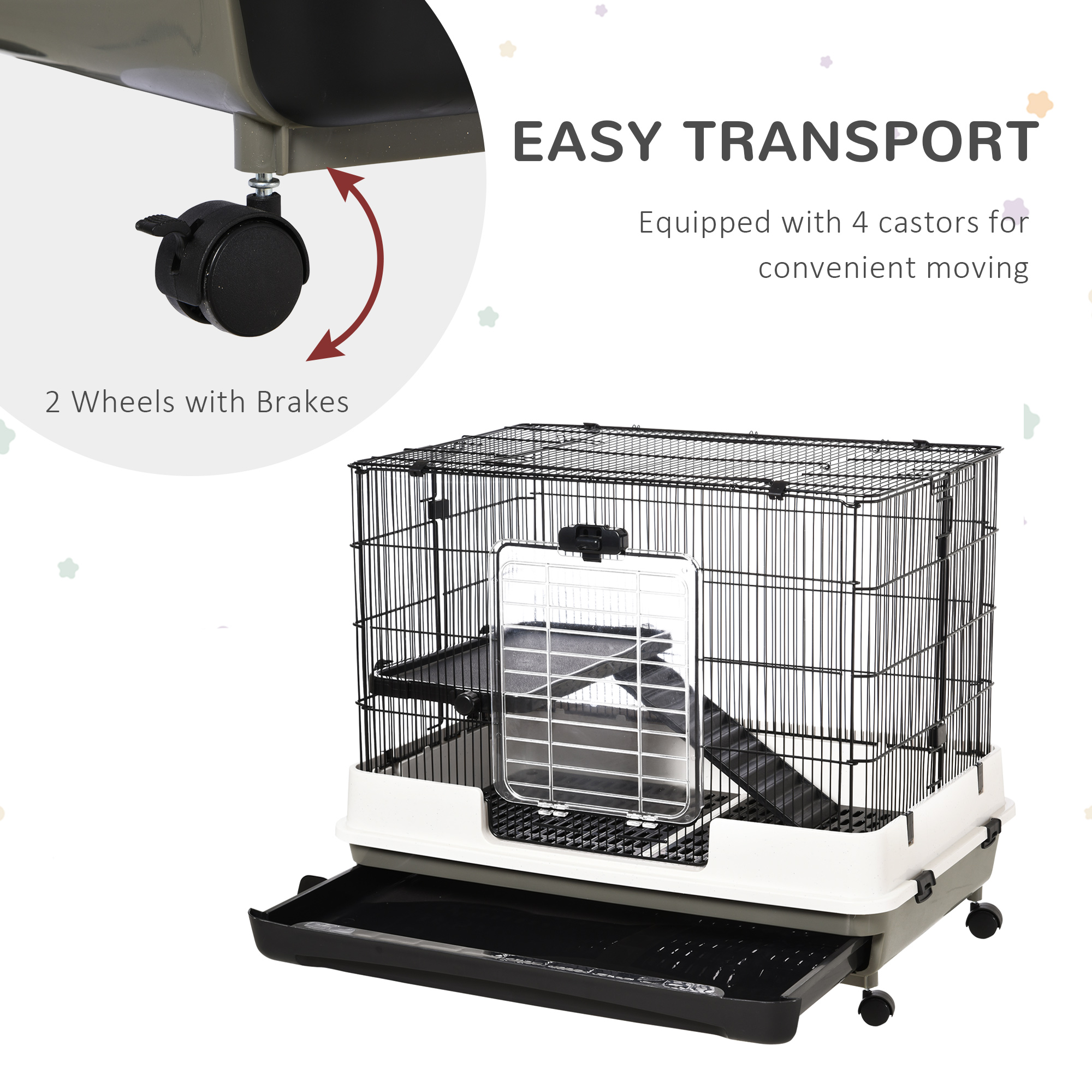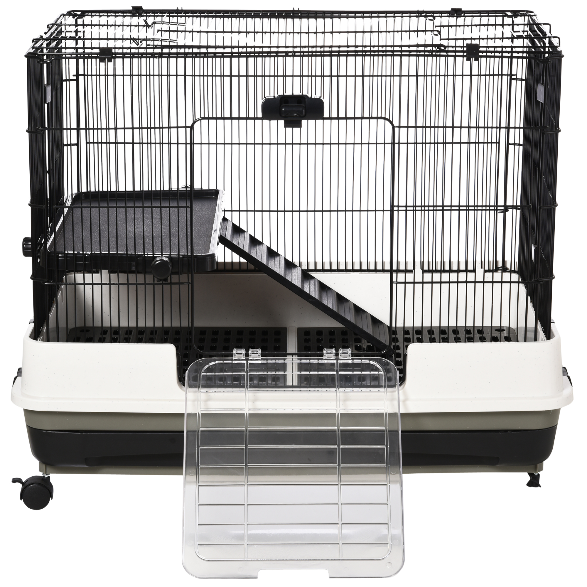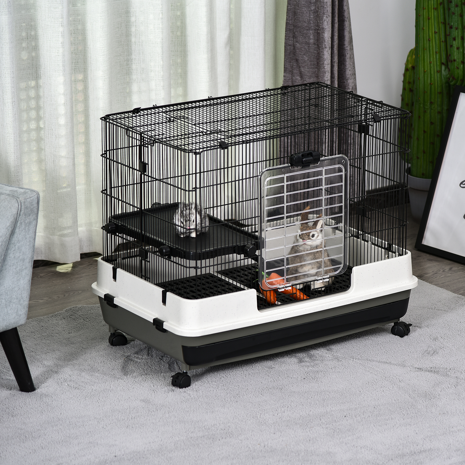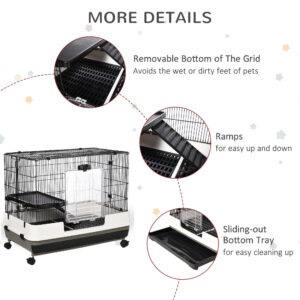 This PawHut cage is the perfect home for small animals. It features four wheels to move around easily, and its slightly elevated design gives some viewing height for your pets whilst inside. Its deep base allows easy collection of litter and bedding, with the removable tray making it easy to clean. Inside a ramp and platform sits so they can move about, with a large door for easy access. It’s finished with a metal cage for security, which allows fresh air to pass through and preventing them feeling trapped inside.