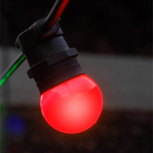 Eagle Connect 2w LED RGB colour changing shatterproof polycarbonate Golf Ball lamp have a very low power consumption. When powered on the lamp will cycle through the 7 colours Red, Green, Blue, Yellow, Pink, Purple, and Light Blue. This LED Golf ball is a direct replacement for traditional incandescent golf ball bulbs and is perfect for use in festoon lighting, outdoor Christmas string lights and decorative lighting displays.