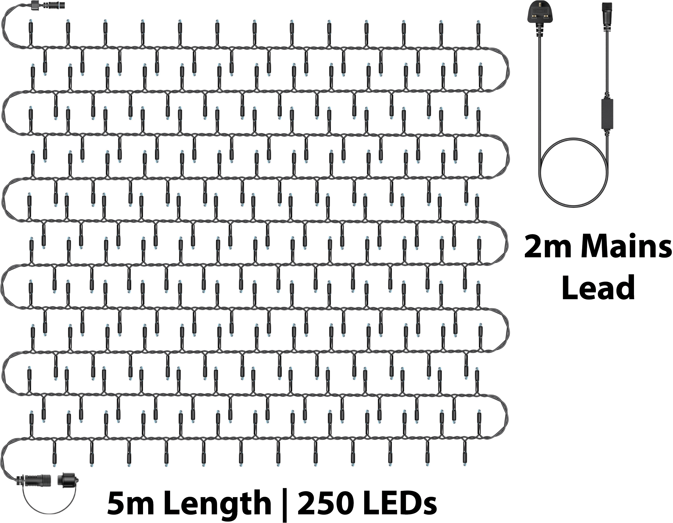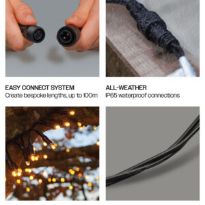 With easy-to-connect plugs, you can easily customize the length of the cluster lights to suit your needs. Whether you want to create a dramatic lighting display or add a subtle glow to your outdoor space, these connectable cluster fairy lights are the perfect solution. Cluster Christmas lights are the perfect way to add a touch of magic to your holiday decor. These LED lights are clustered together on a string, creating a stunning garland of lights. Easy to install and versatile, they can be used inside or outside to create a warm and cozy ambiance. The lights are available in multiples of 5m lengths, allowing you to create the perfect ambiance for any room or occasion. Whether you need a few extra meters for a specific area or want to extend your lighting throughout a larger space, our Eagle Connect system has you covered. Simply order the total length you require, and we will provide you with the appropriate number of 5m lengths to get the job done. With our Eagle Connect light systems, the possibilities are endless.