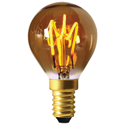 Girard Sudron LED Filament Golfball Bulb ‘3 Loops’ G45 (2W/3W) E14 (Colour Amber Type Dimmable)||Mix and Match ceiling roses, textile cable, lampholders and bulbs for a bespoke look||LED Filament Golfball Bulb ‘3 Loops’ G45 (2W/3W) E14||Available in various colours and colour temperatures||Available as dimmable with a dimmer switch or non dimmable