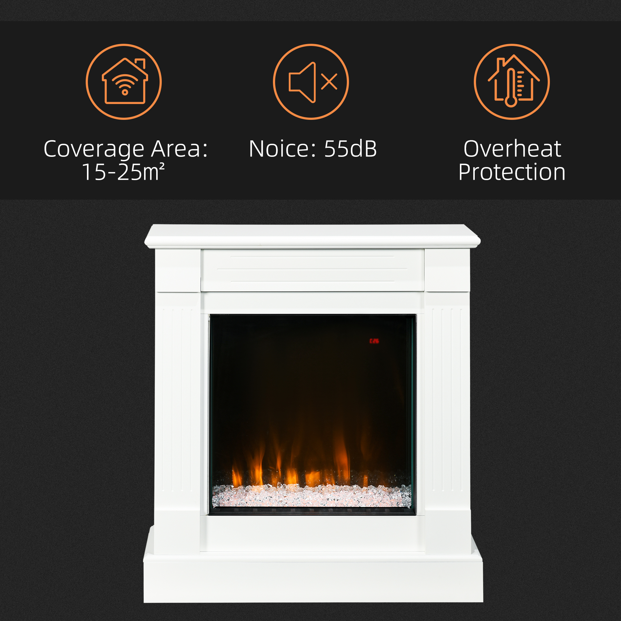 The full package for the colder season: this HOMCOM electric fire with white surround looks like a real fireplace – yet much safer. The electric fire is adjustable between 15??-30??, with a control thermometer, so the heat keeps constant to the temperature you set. The flame, which can be used without the heat, can be switched between three different brightnesses, 11 flame colours and ten faux crystal stone colours: set it to a mood of your choice. Winter times made warm and beautiful.
