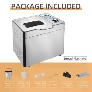 - 1 x measuring cup, 1 x measuring spoon, 1 x hook, 1 x kneading paddles, 1 x fruit nut dispenser included