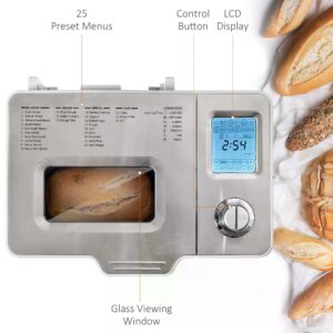 - 25 preset menu options like wholewheat, dough, cake, bake can be selected