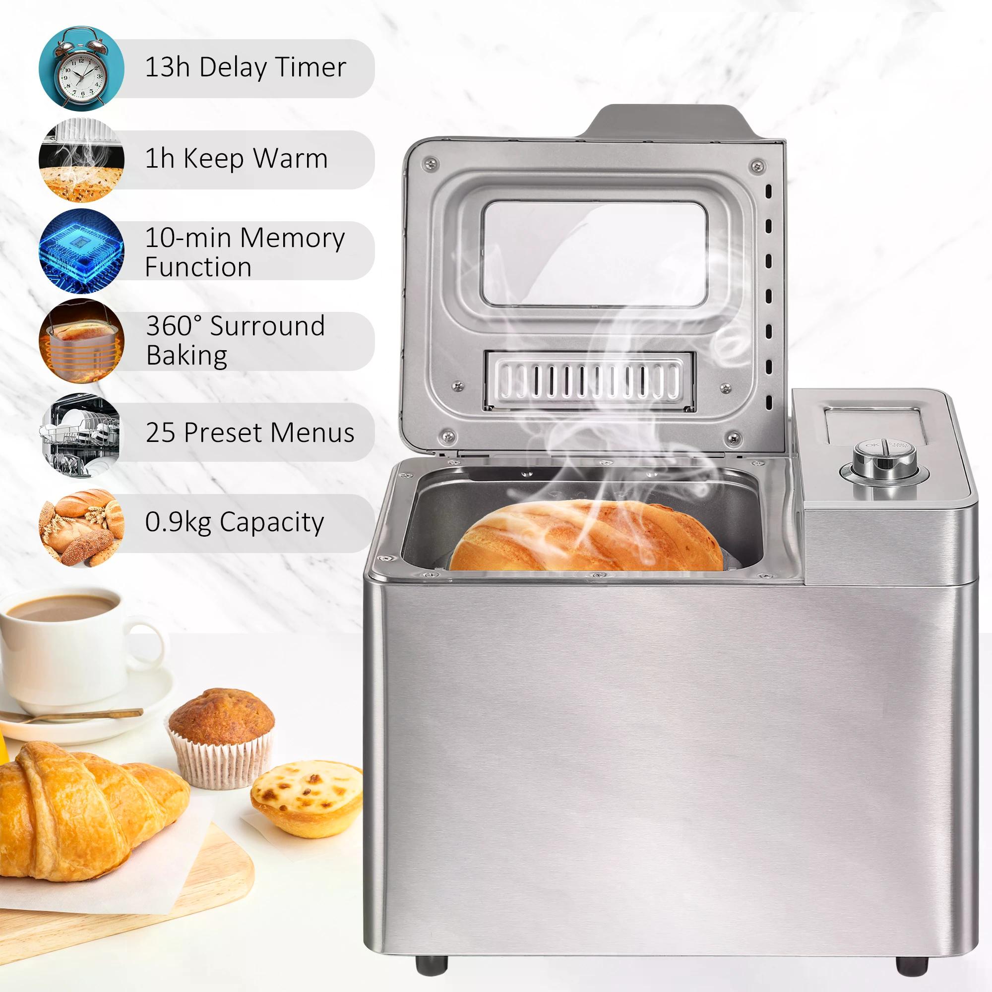 Do you want to make healthy and delicious bread at home? Why not choose the bread maker from HOMCOM? Thanks to the 25 preprogrammed menu options, wholewheat, dough, bake, cake, sandwich and more can be made. Just put the raw materials, and the bread machine will complete the whole process of kneading, fermentation and baking. In addition, 13-hour delay timer allows you to prepare the ingredients the night before and have a delicious breakfast when you wake up in the morning.