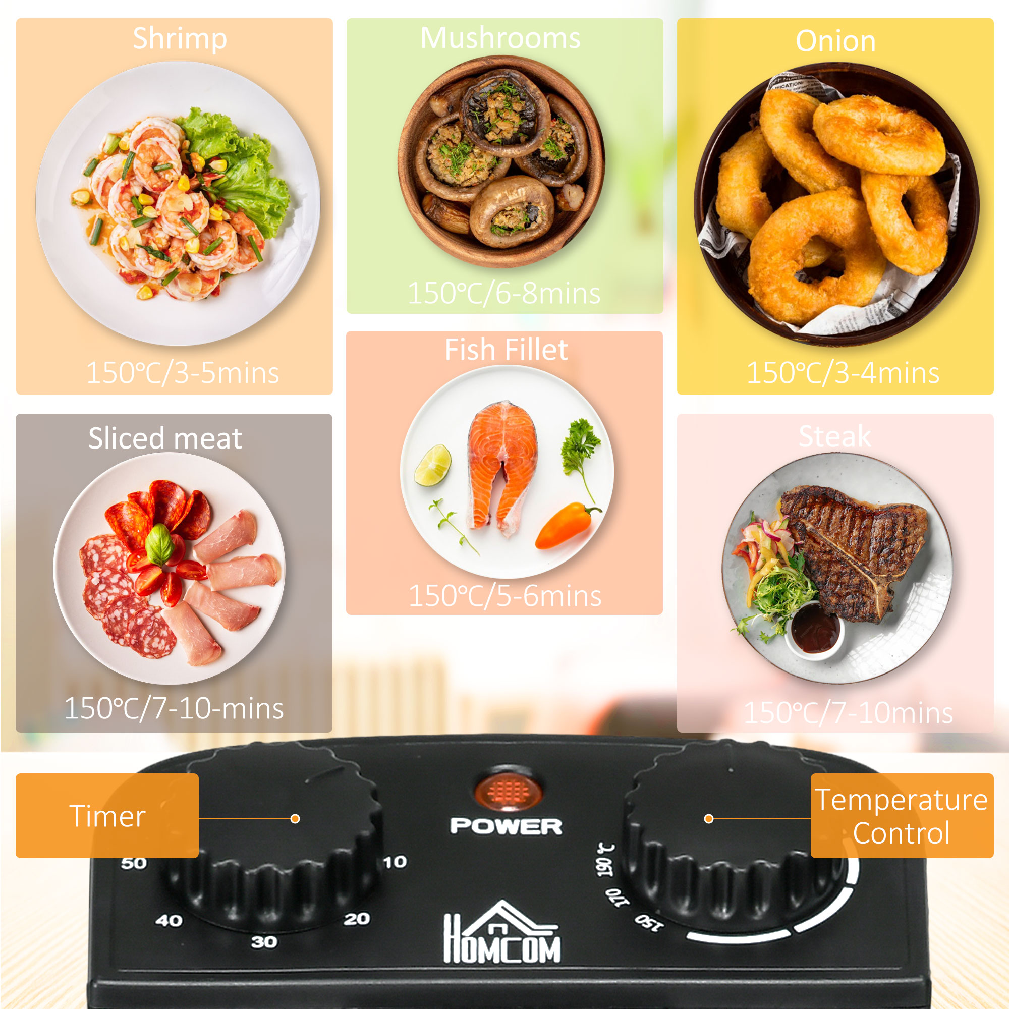 - 2000W power: preheats quickly. No messing about cooking food! Indicator shows when oil is ready